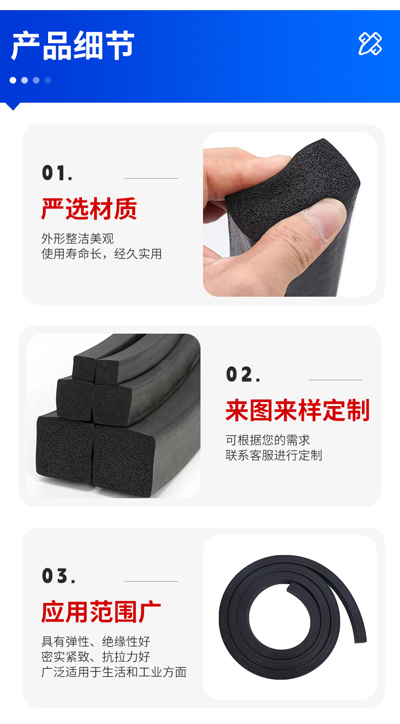 씰링 스트립 EPDM 폼 씰링 스트립 EPDM 씰링 스트립 사각형 스트립 캐비닛 충돌 방지 씰링 스트립 맞춤형 도매스토어 가기