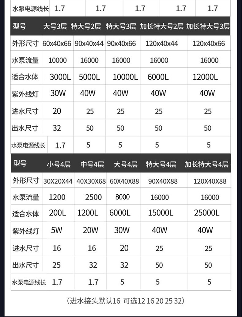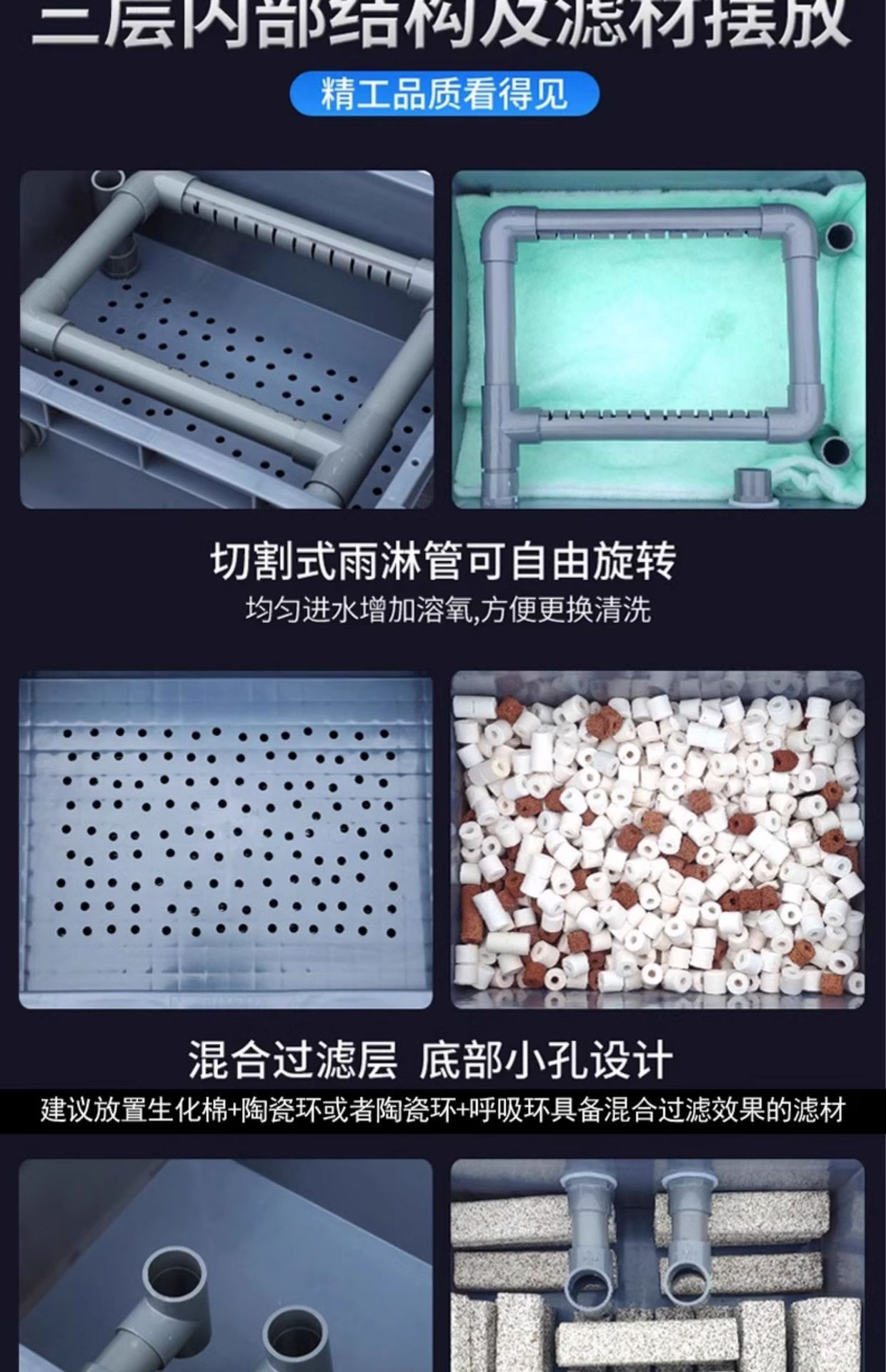 • 30개의 높은 유형의 내장형 그리드 플레이트 4층 필터 재료 패키지 80cm 이내의 수조에 권장됩니다.