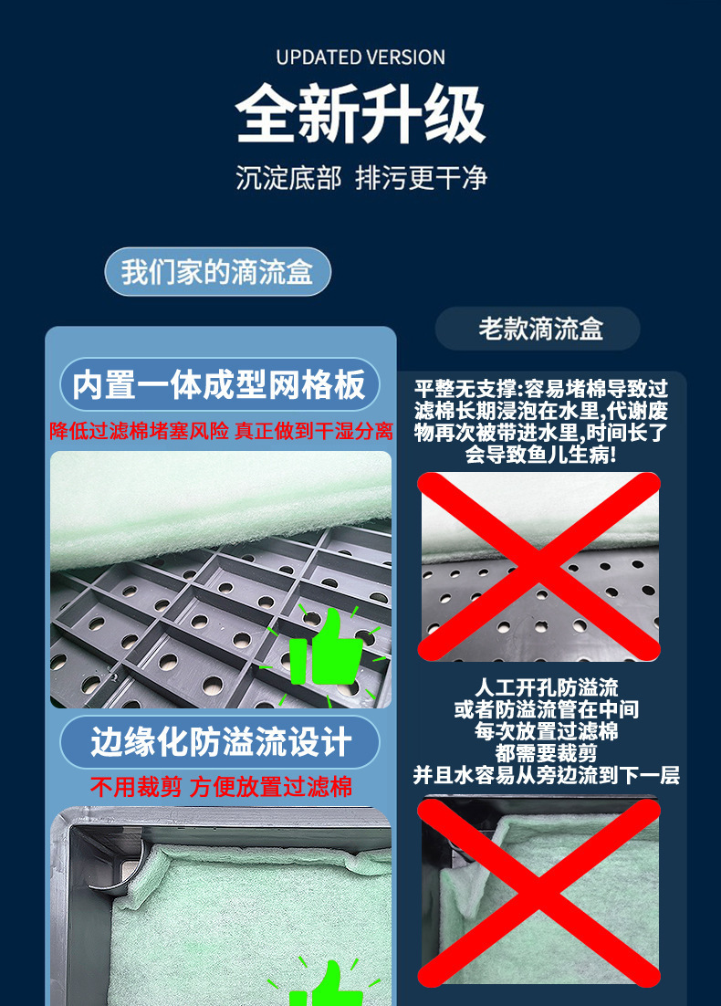 • 80cm 이내 수조에 권장되는 40개의 높이가 높은 내장형 그리드 플레이트 2겹 필터 재료 패키지