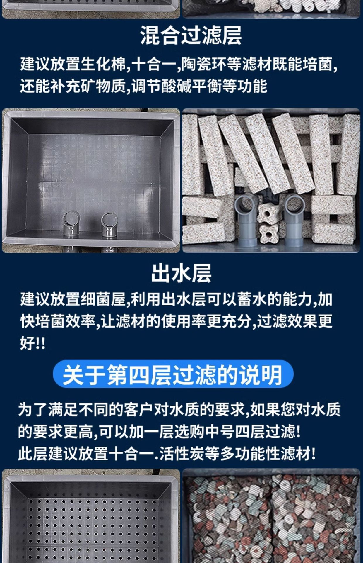 • 40 높이 내장형 그리드 패널 4층 필터 재료 패키지 약 1.5톤의 물 권장