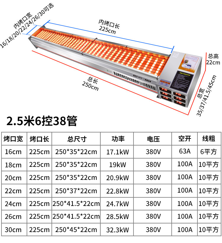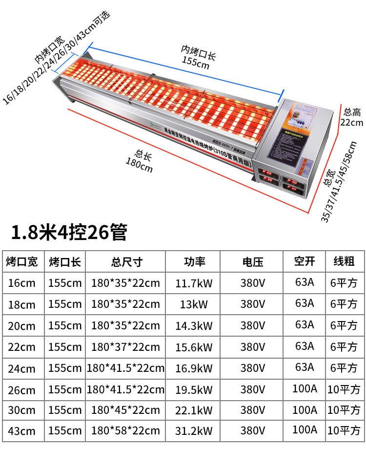 • 1.8m 제어 그릴 포트 125× 20cm 상업용 11kW 380V.