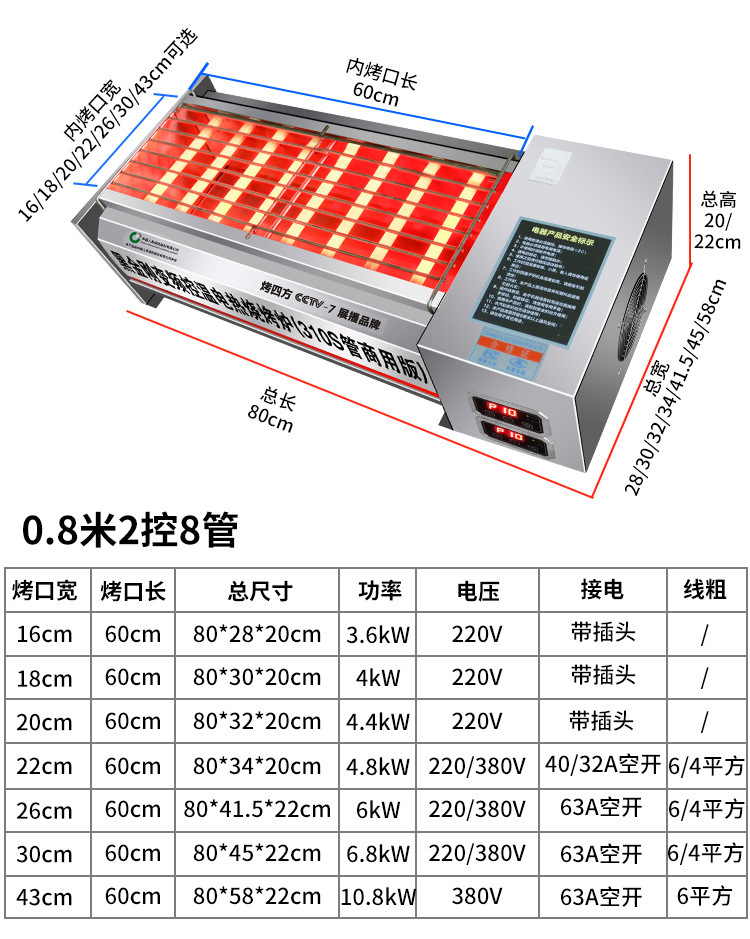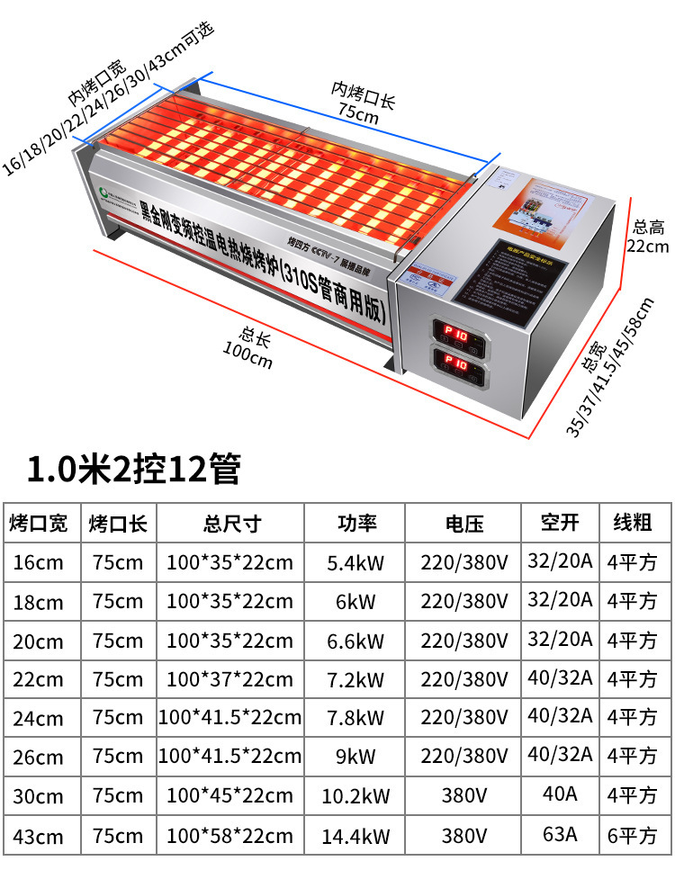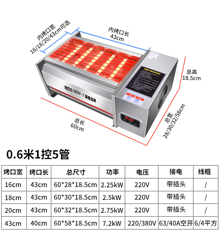 • 1.0m 제어 그릴 포트 60× 18cm 상업용 4kW 플러그 220V 포함.