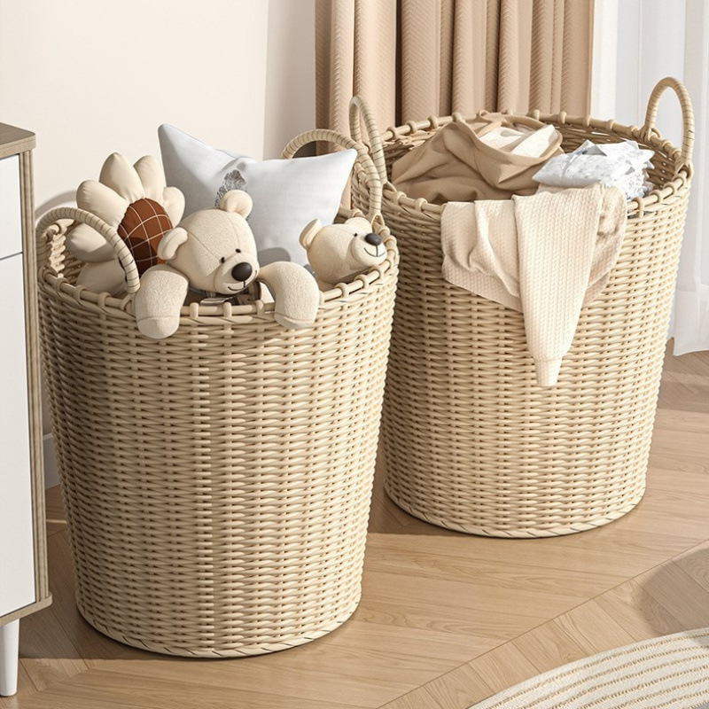 가정용 욕실 수납 바구니 기숙사 더러운 옷 바구니 더러운 옷 수납 바구니 모조 등나무 더러운 옷 바구니 욕실