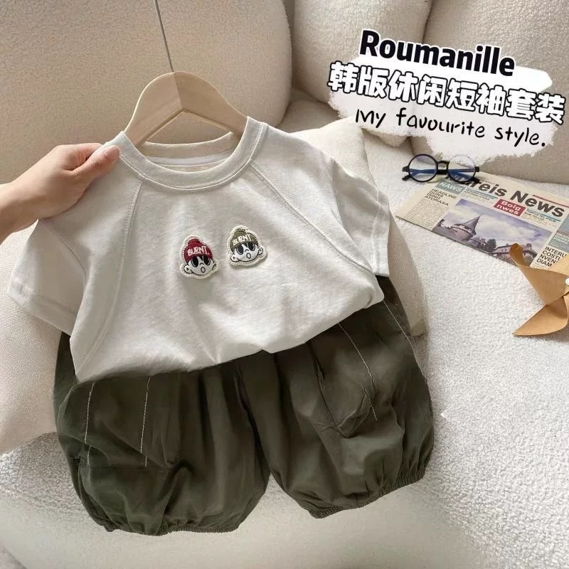 유아복, 여름 반팔 티셔츠, 반바지, 스플릿 투피스 세트, 남아용 반팔 상의, 얇은 5부 팬츠스토어 가기