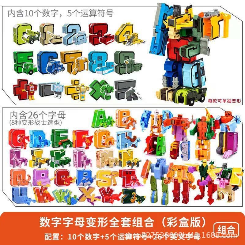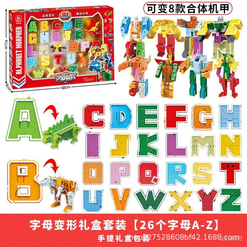 Xinlexin 알파벳 변형 장난감 정품 26 영어 세트 공룡 어린이 교육 소년 로봇 자동차