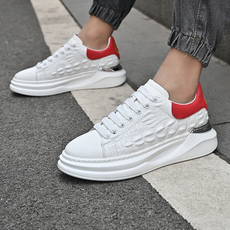 2025년 호랑이년 한정 자수 화이트 슈즈, 천연가죽 펌프스 플랫폼, 두꺼운 밑창 맥쿤, 다용도 남성화, 캐주얼 슈즈, 운동화스토어 가기