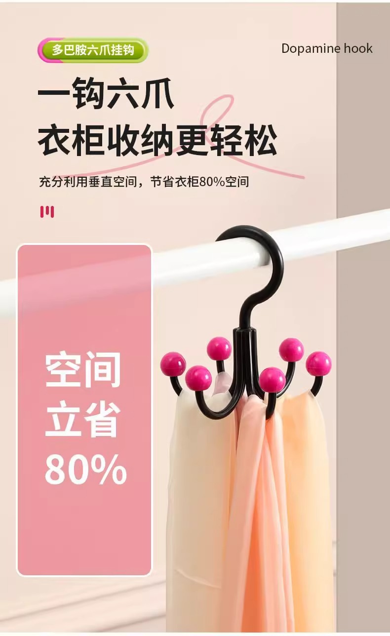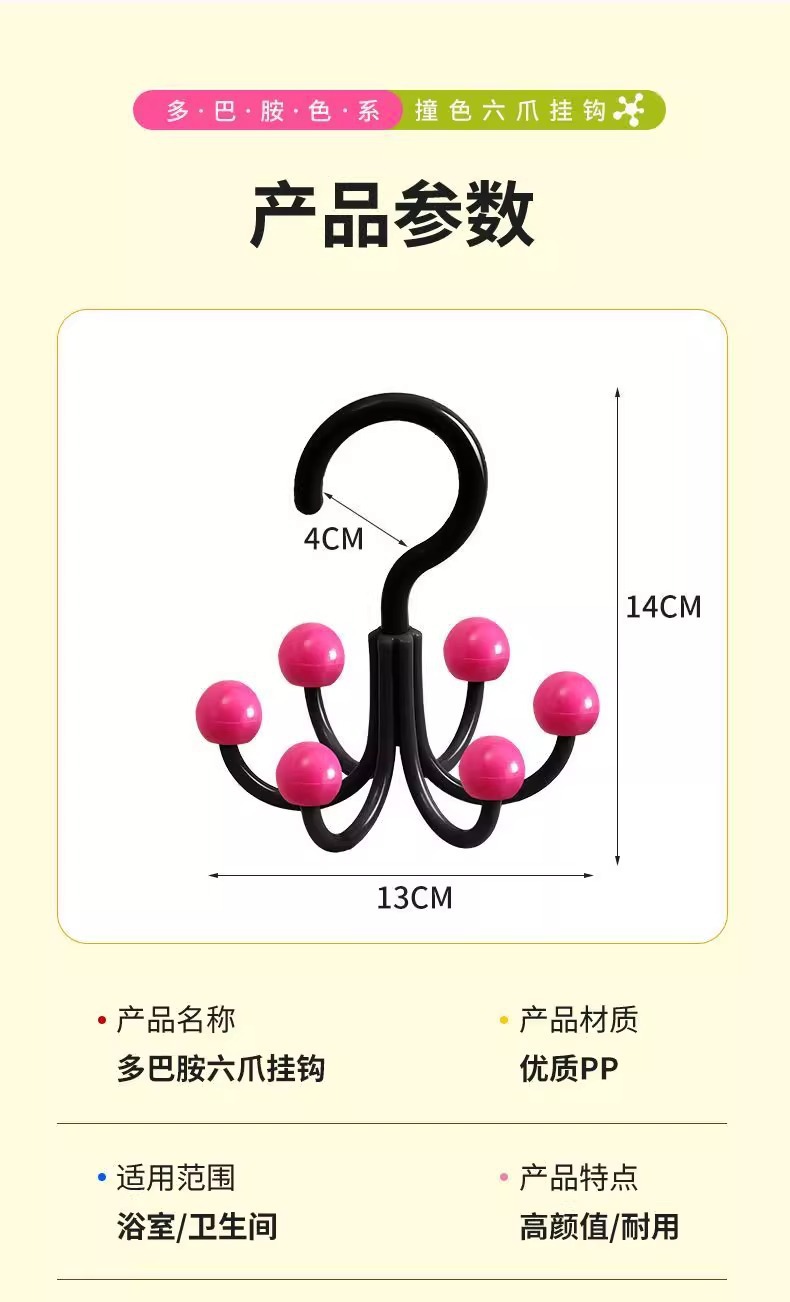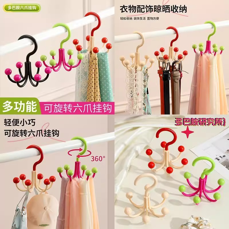 도파민 회전식 6발톱 후크 가방 걸이 가정용 다기능 속옷 및 모자 걸이 펀치 없는 보관 선반