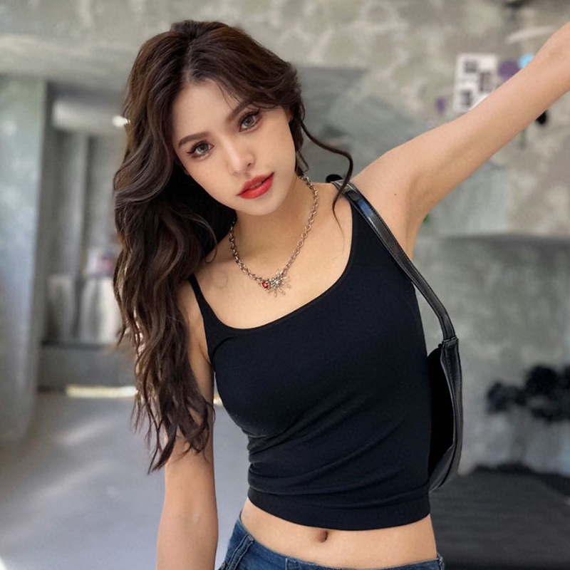 여성용 모달 스몰 서스펜더 베스티, 가슴 패드가 있는 고품질 섹시 핫걸 스타일 슬리밍 아우터웨어스토어 가기