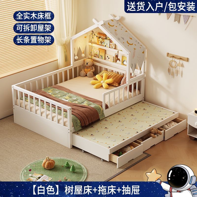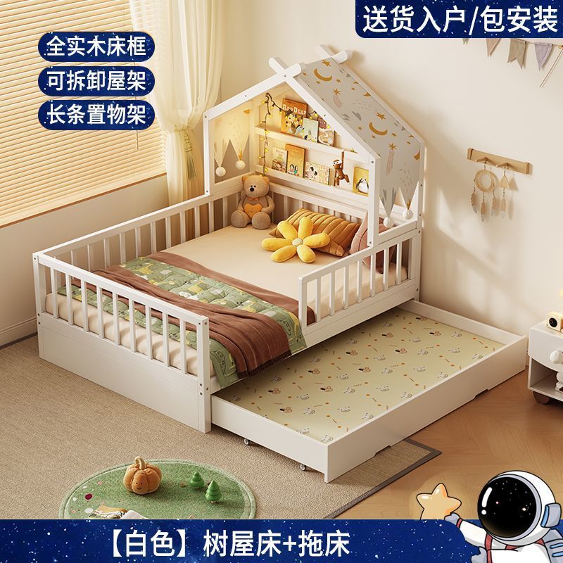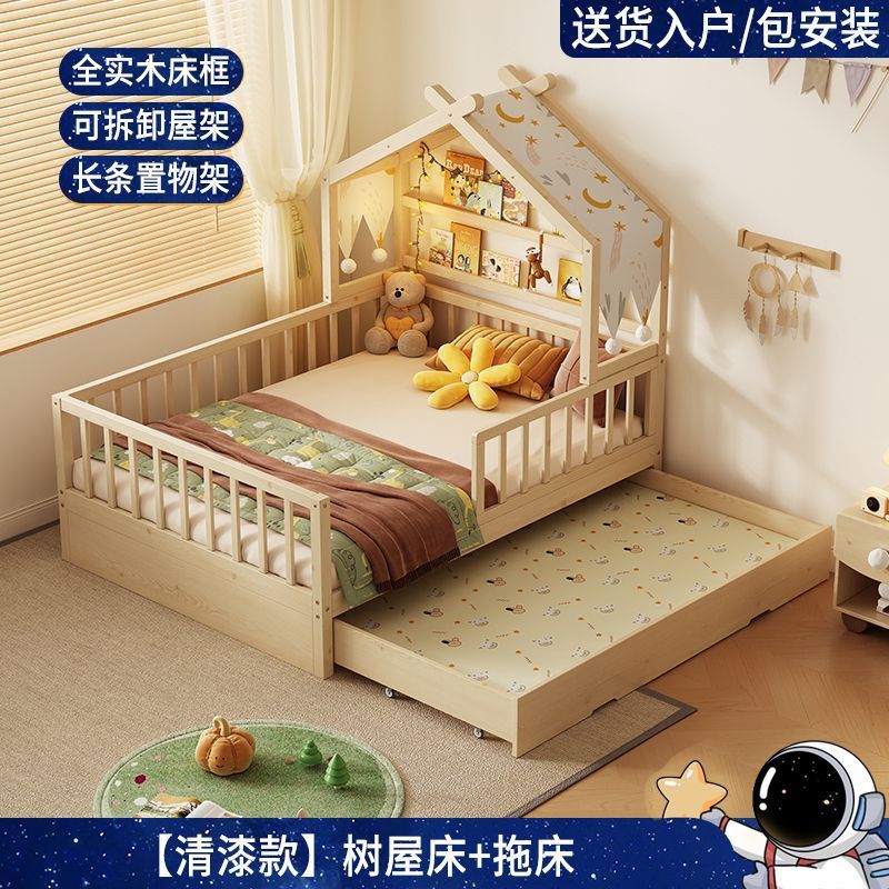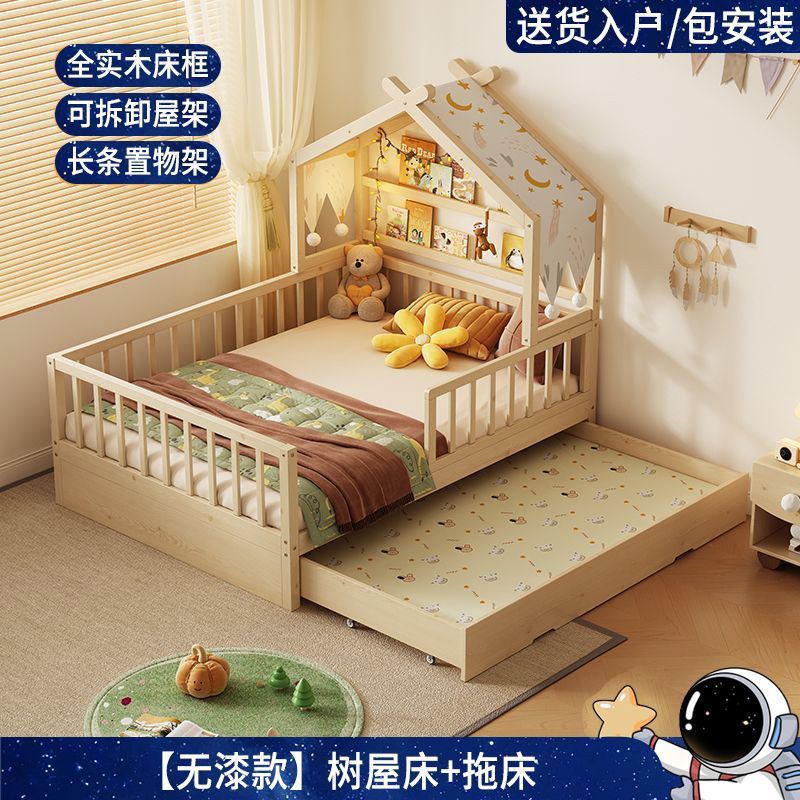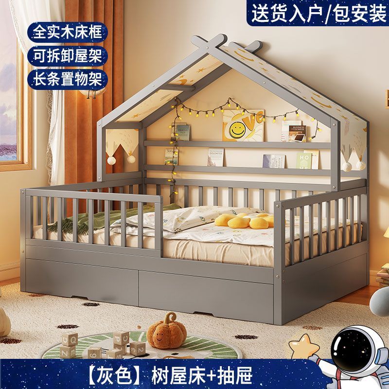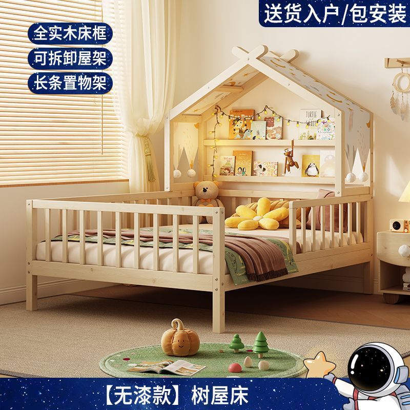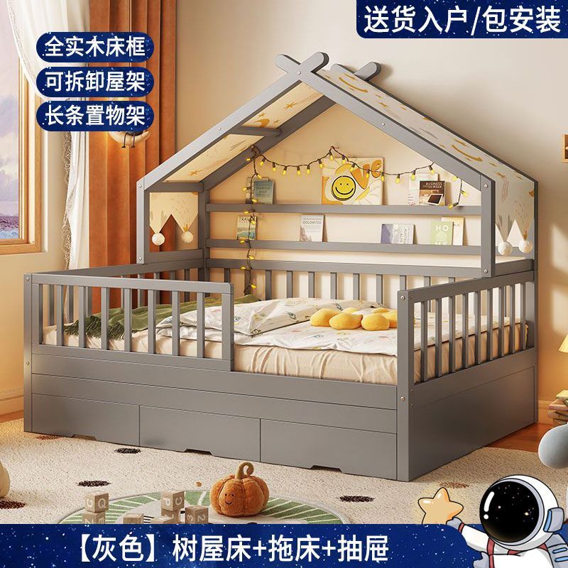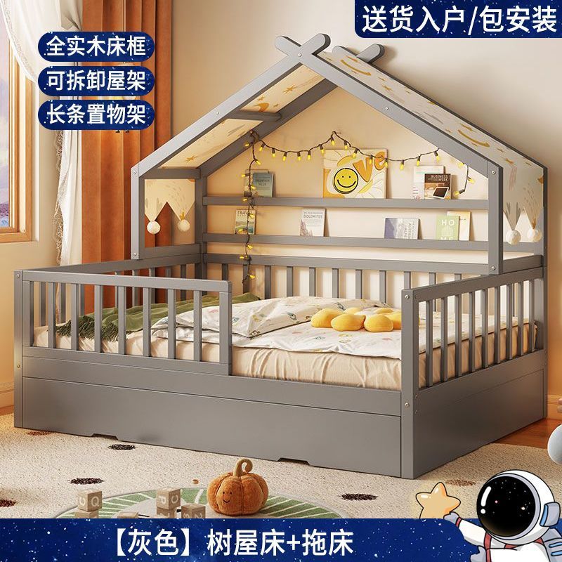 모든 단단한 나무 어린이 소년 트리 하우스 침대 소녀 공주 침대 트롤리 가드 레일이있는 작은 침대 홈 베이비 싱글 침대스토어 가기