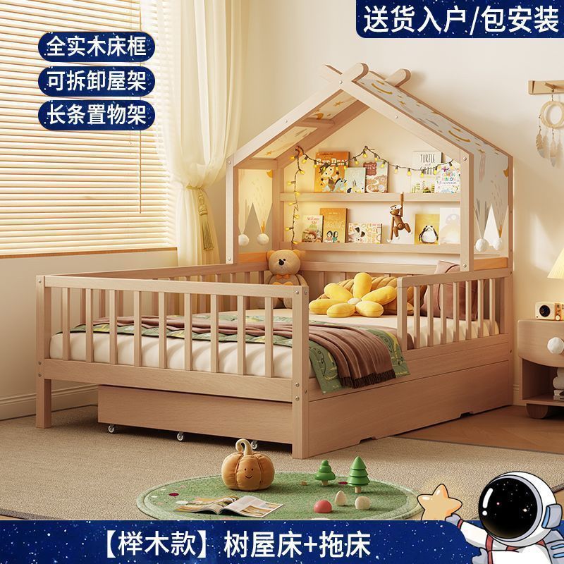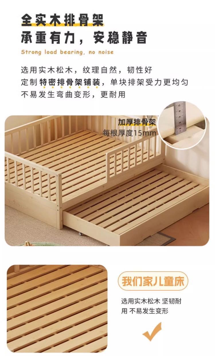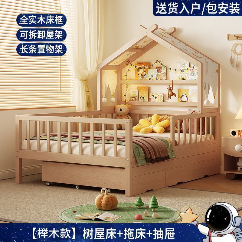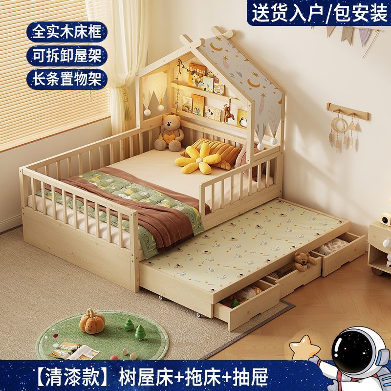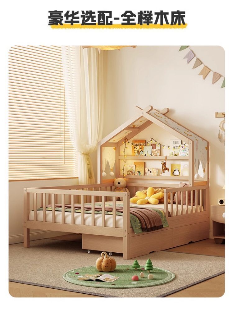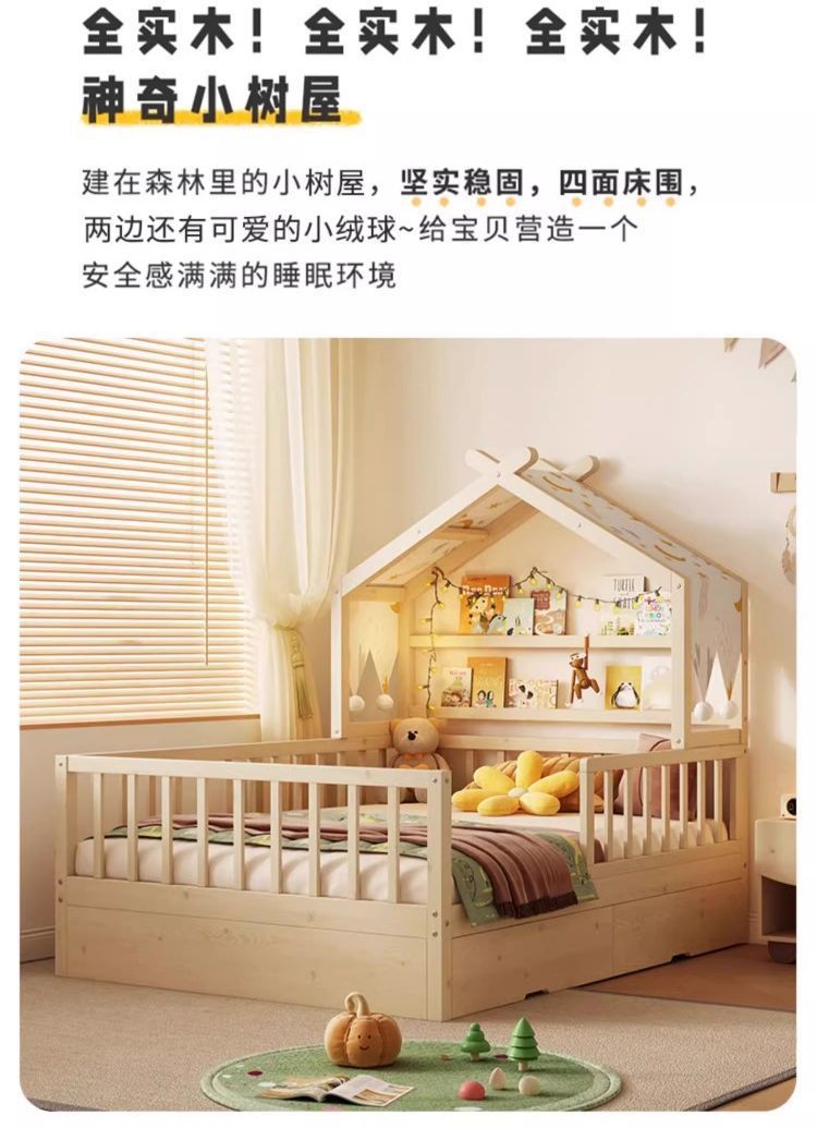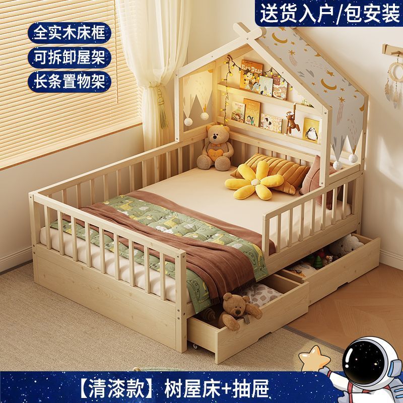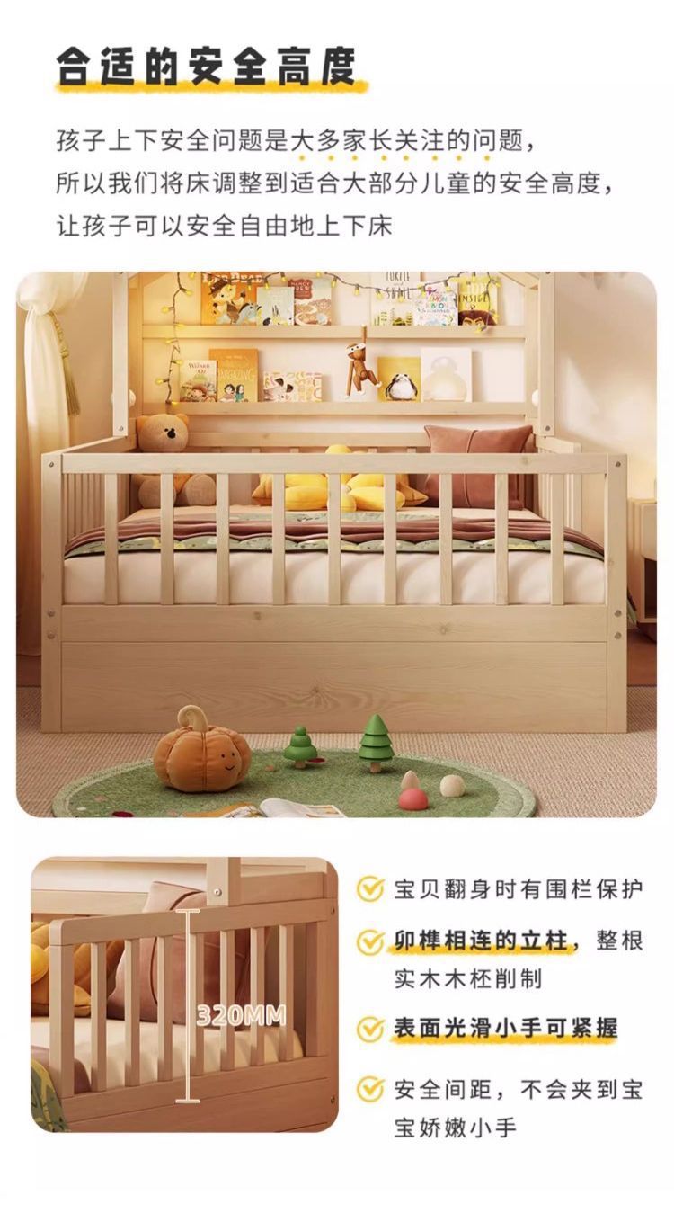 • [업그레이드된 너도밤나무 모델] 사방에 가드레일이 있는 통나무 아이스캔디 침대 + 걸레 침대 + 서랍