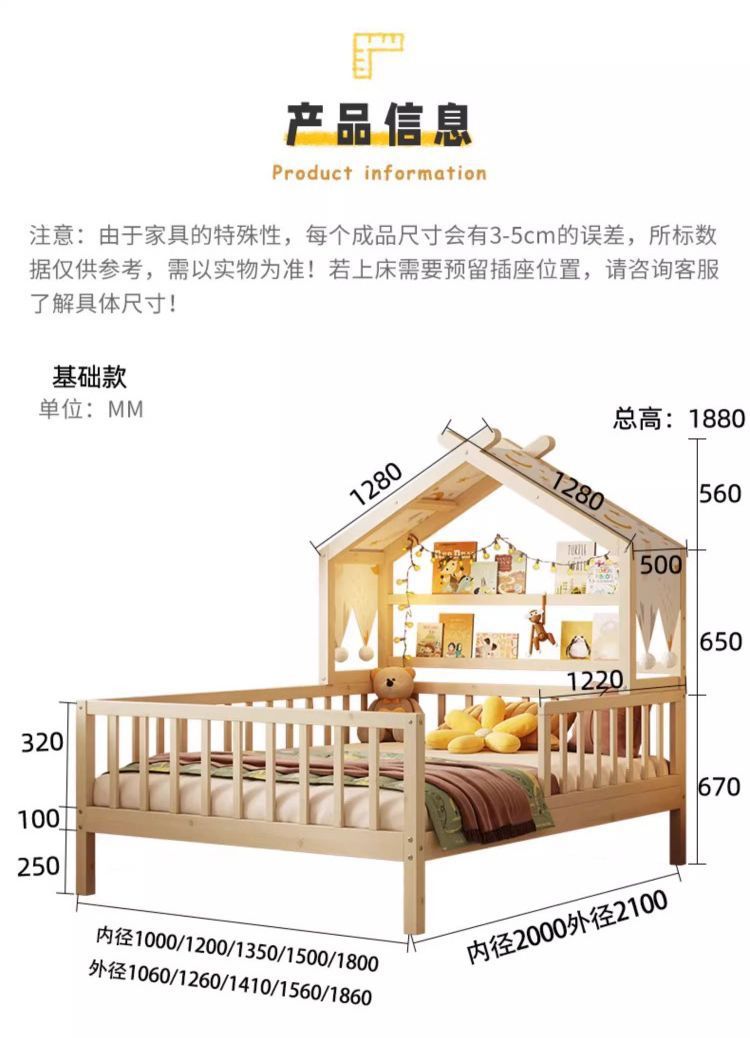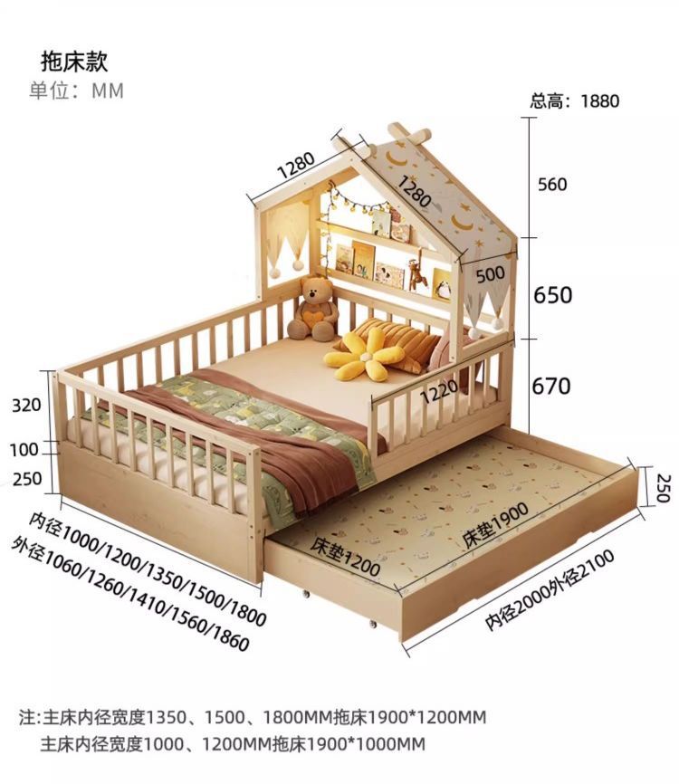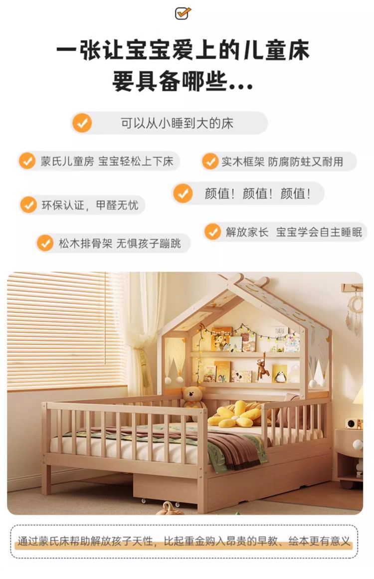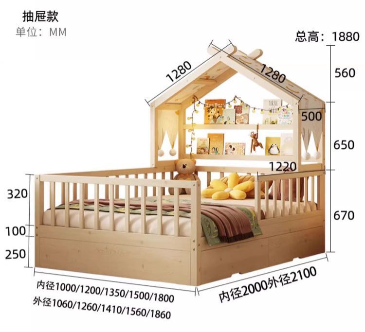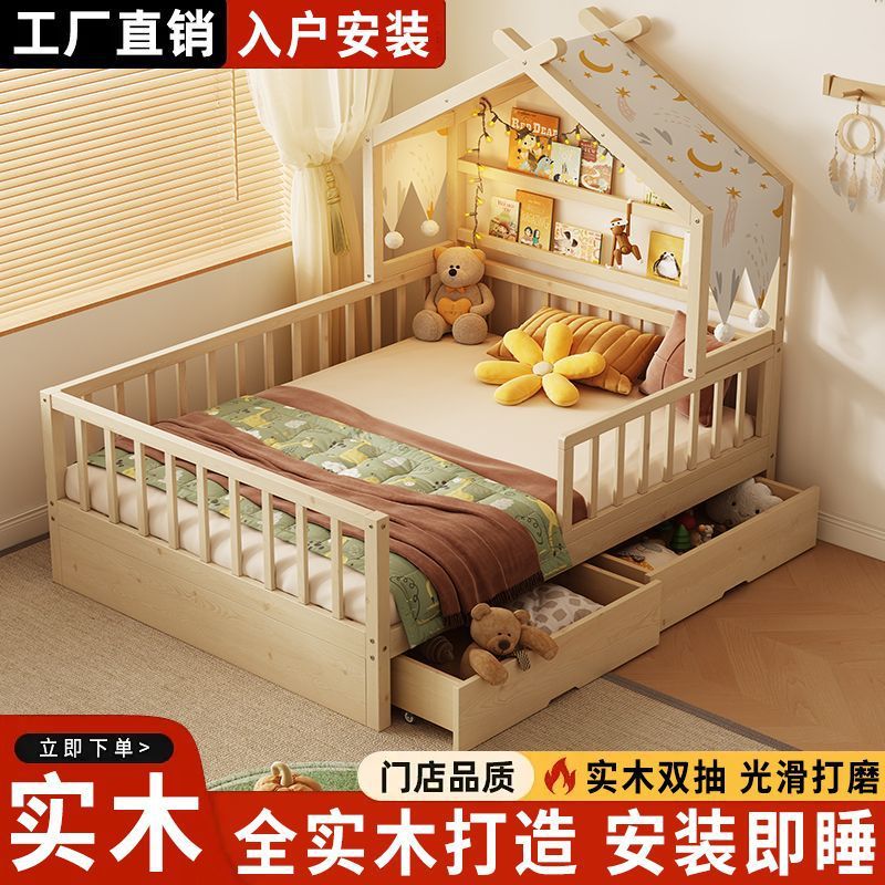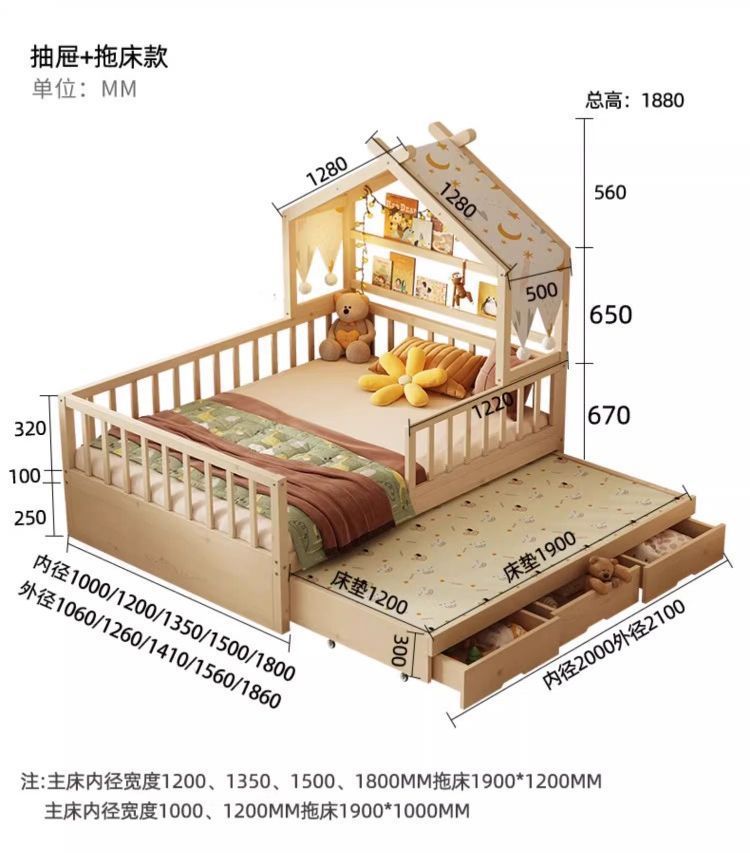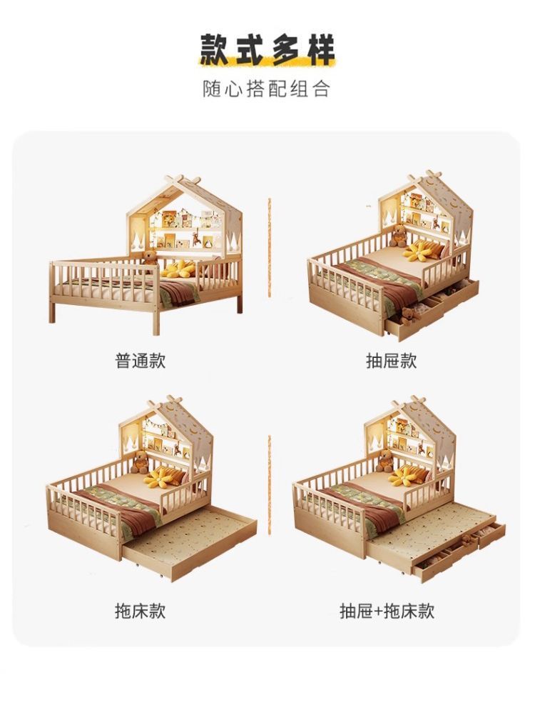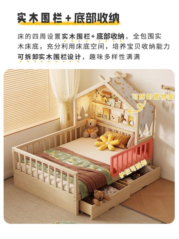 • [업그레이드된 너도밤나무 모델] 사방에 가드레일이 있는 통나무 아이스캔디 침대 + 걸레 침대 + 서랍