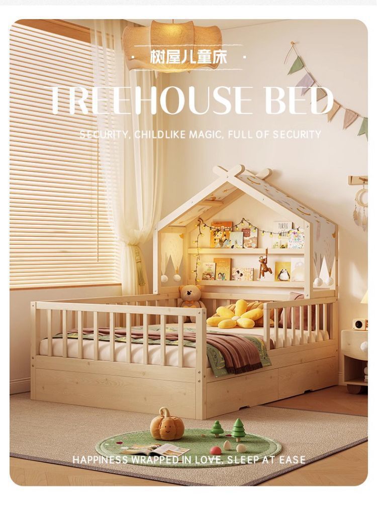 모든 단단한 나무 어린이 소년 트리 하우스 침대 소녀 공주 침대 트롤리 가드 레일이있는 작은 침대 홈 베이비 싱글 침대