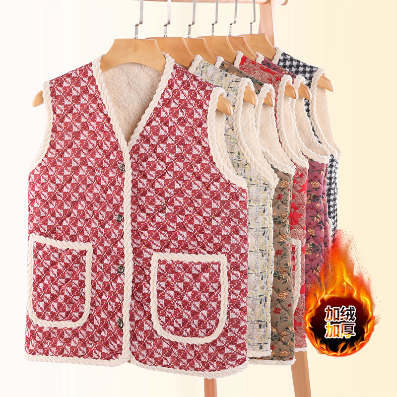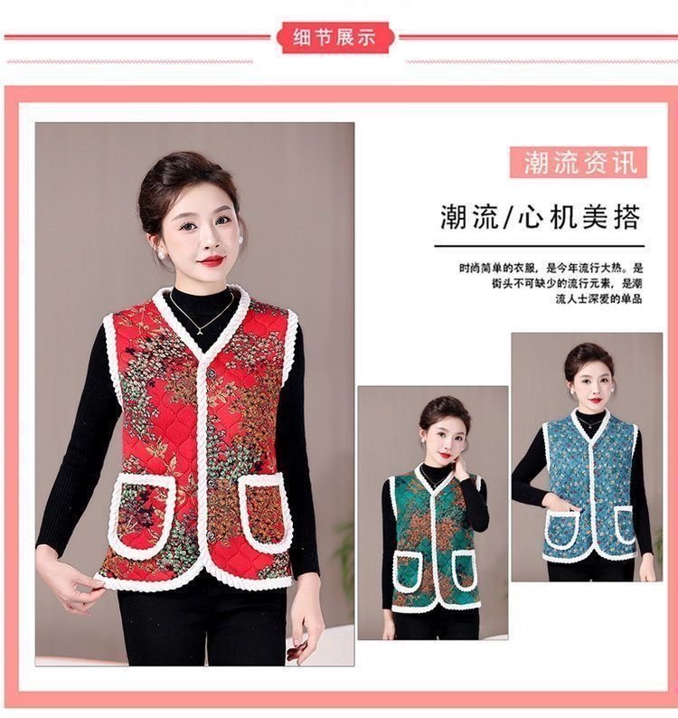 중년 및 노년층 어머니복, 벨벳 조끼, 민소매 조끼, 편안하고 따뜻한 새로운 스타일의 면 의류, 가을 겨울 의류스토어 가기