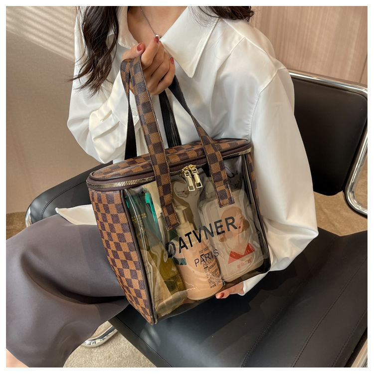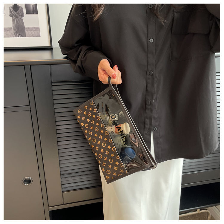 새로운 화장품 가방 ins 감각 방수 PVC 슈퍼 인기 대용량 여성 휴대용 여행 세면 용품 보관