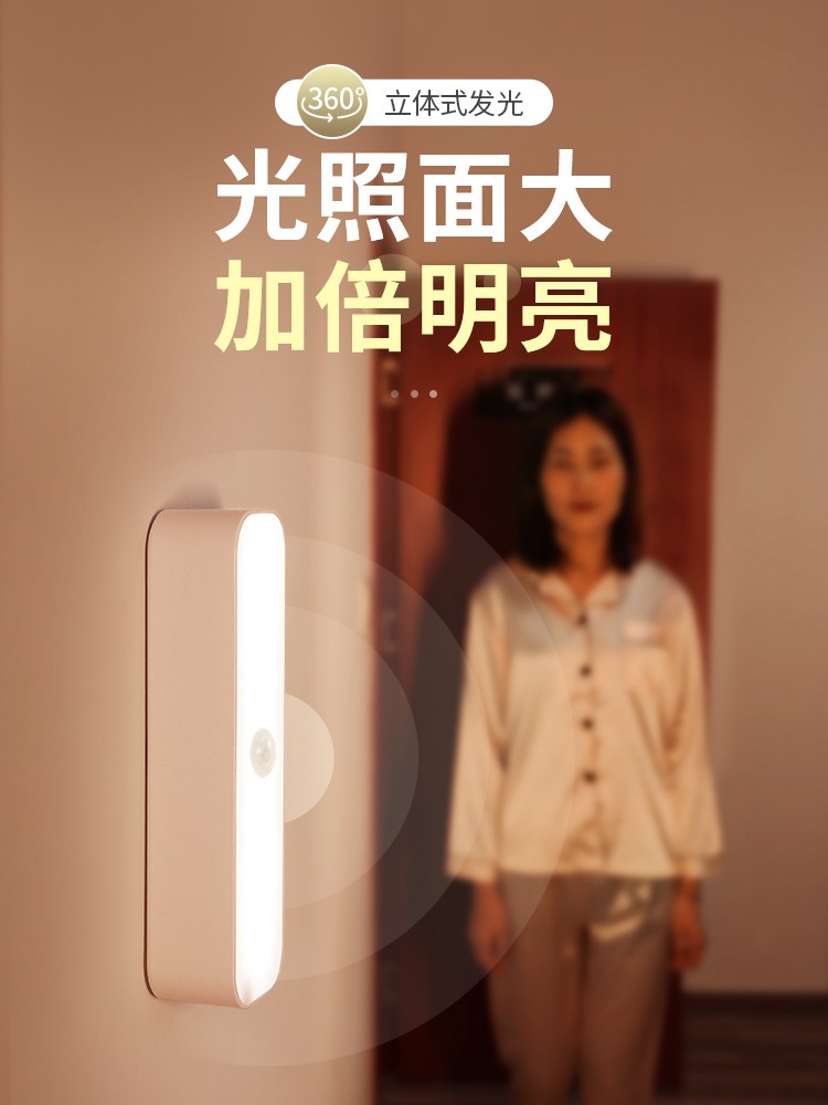 ♔ 인체 유도 야간 조명, 가정용 무선 통로 벽 야간 복도 유도를 위한 지능형 충전식 음성 제어 조명스토어 가기