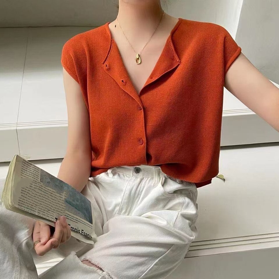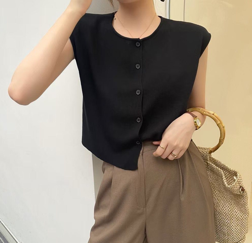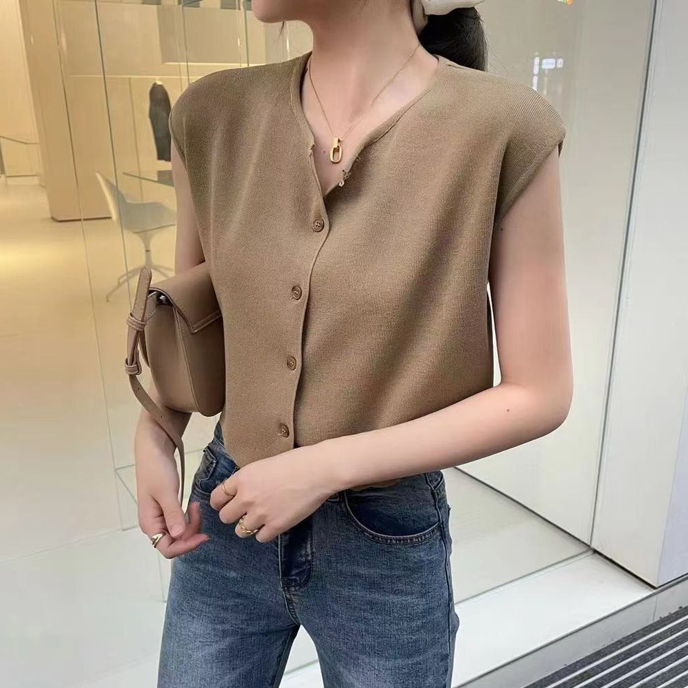 니트 조끼 여성 겉옷 양복 조끼 카디건 봄 여름 라운드 넥 패션 다용도 탑