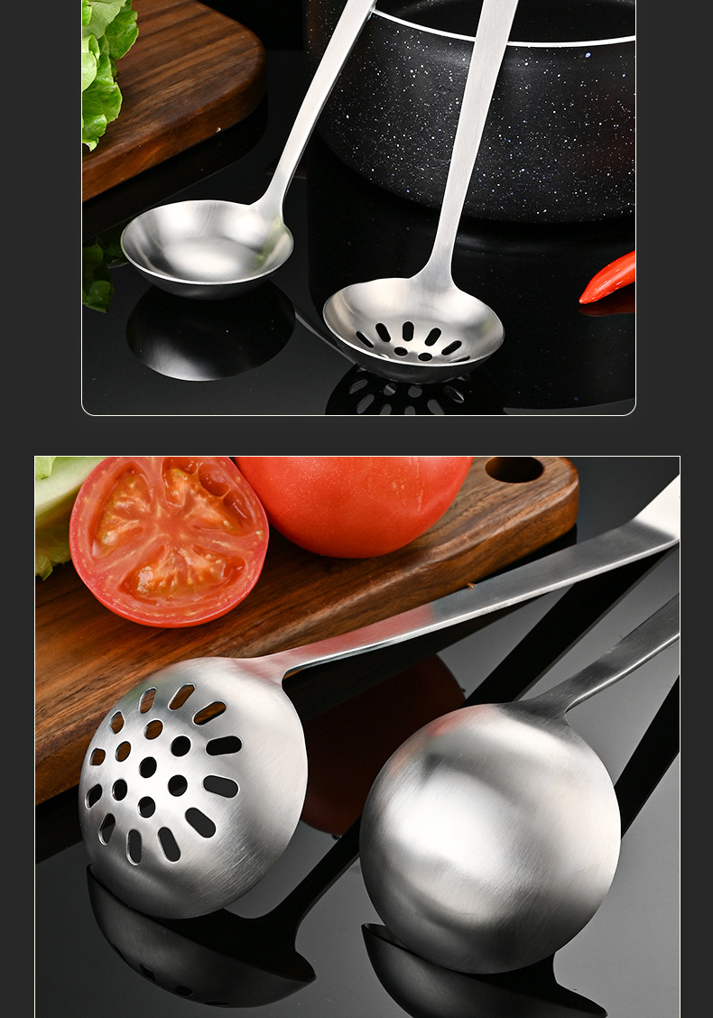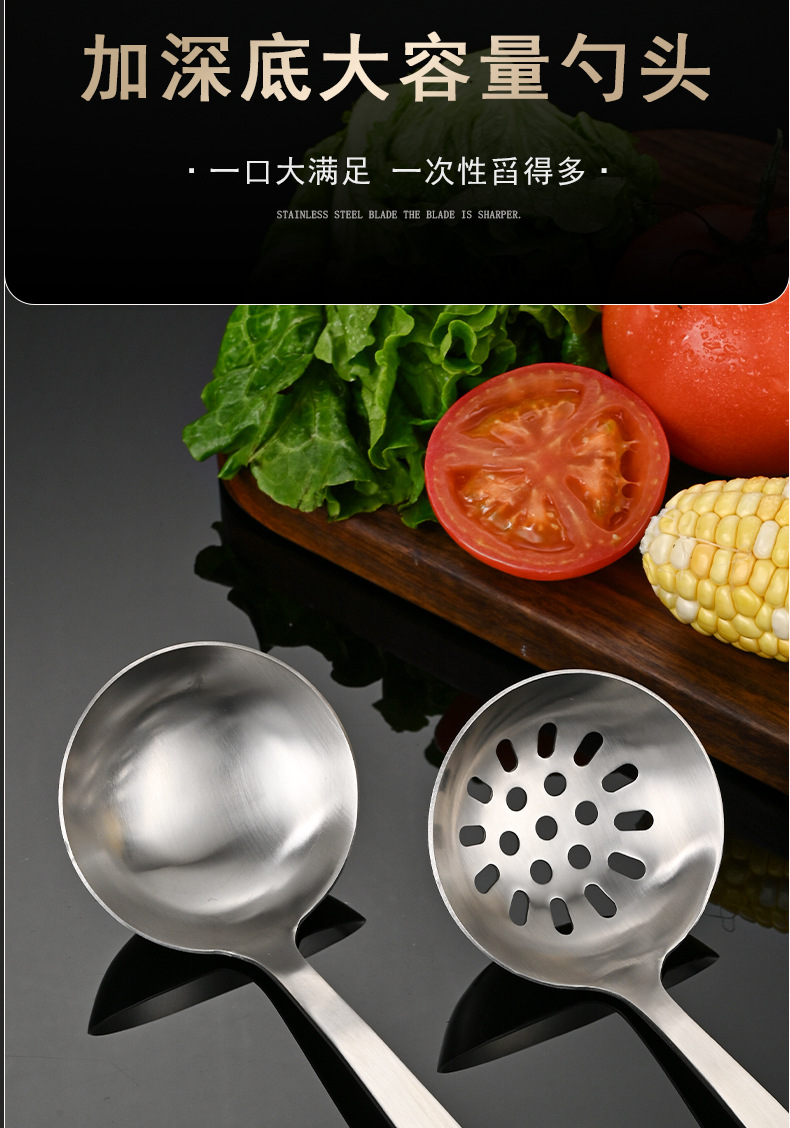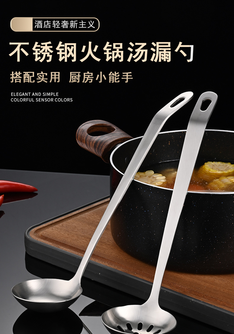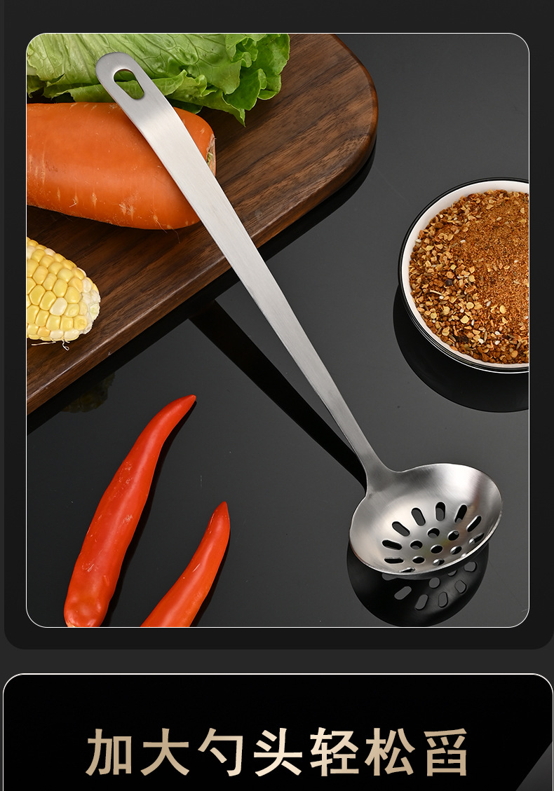 국경 간 내구성 스테인레스 스틸 냄비 스푼 긴 손잡이 수프 쉘 소쿠리 두꺼운 주방 식기 매트 걸이형 스푼