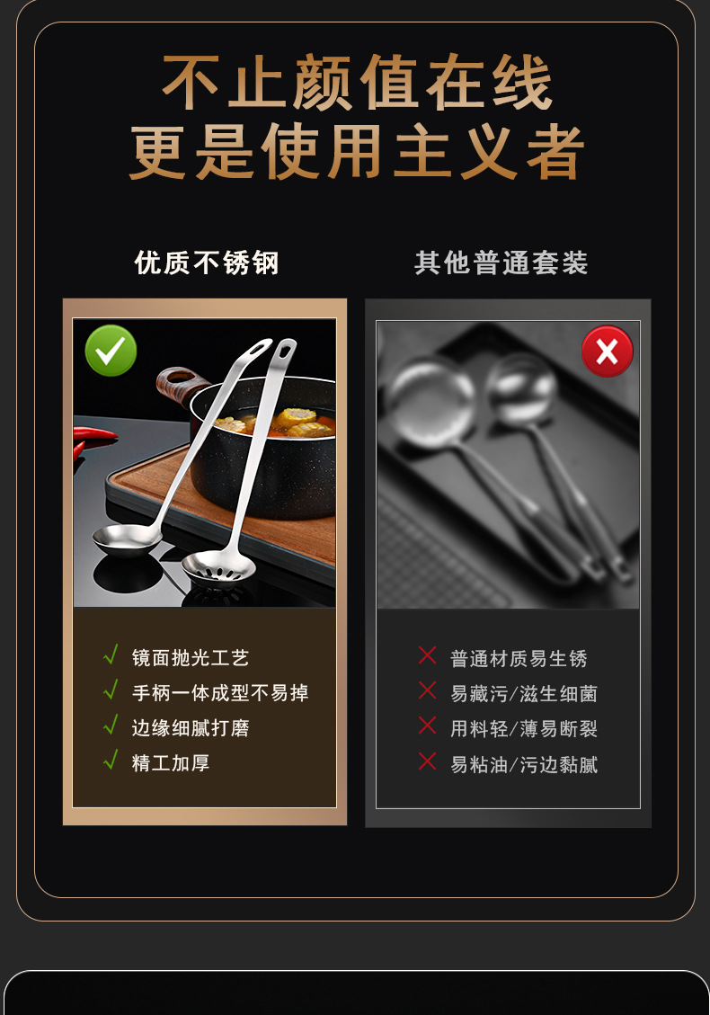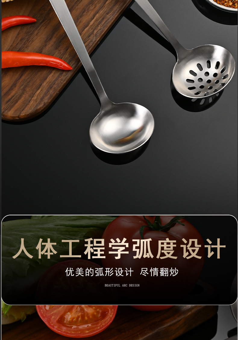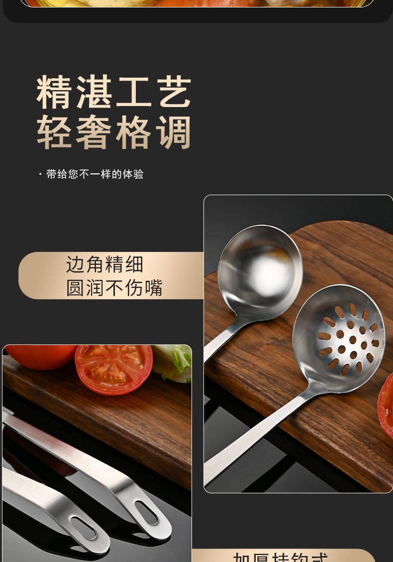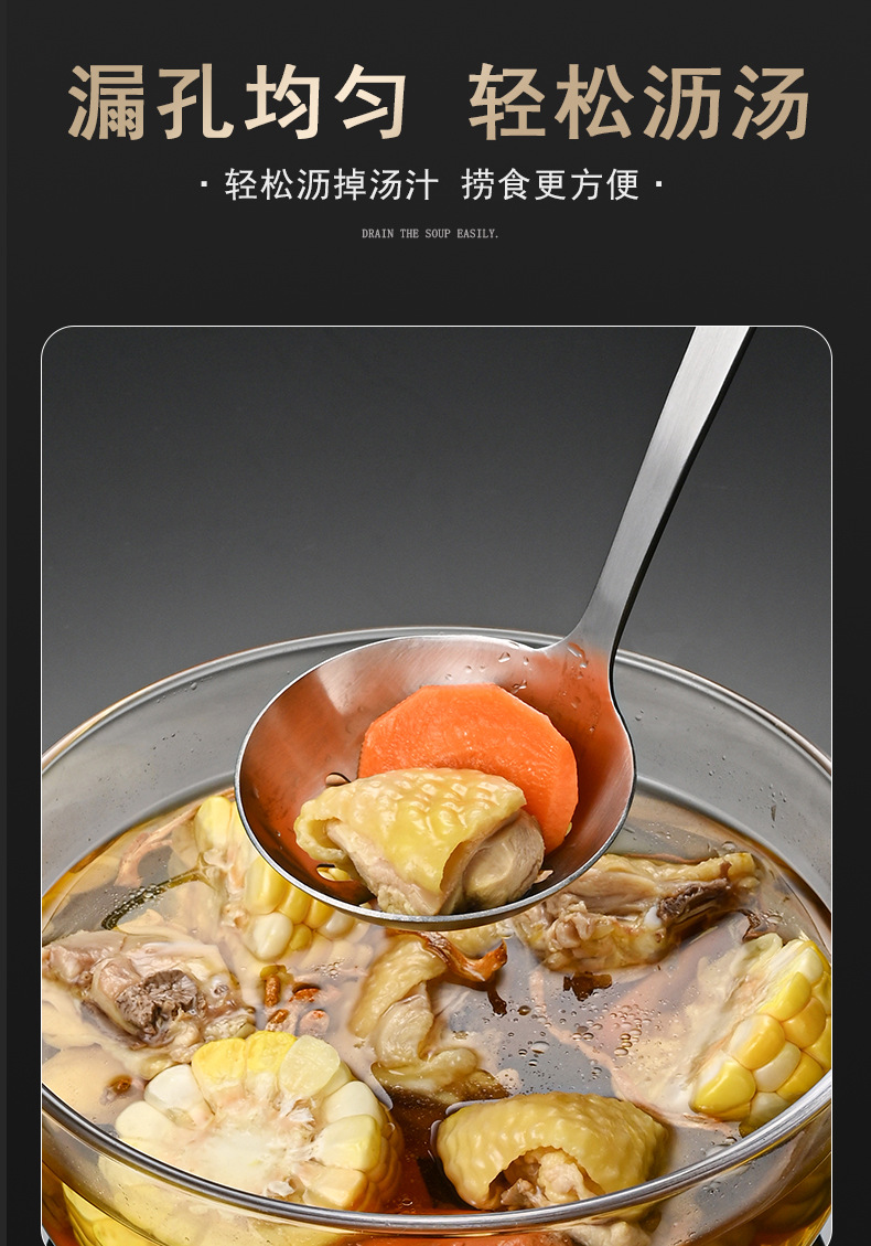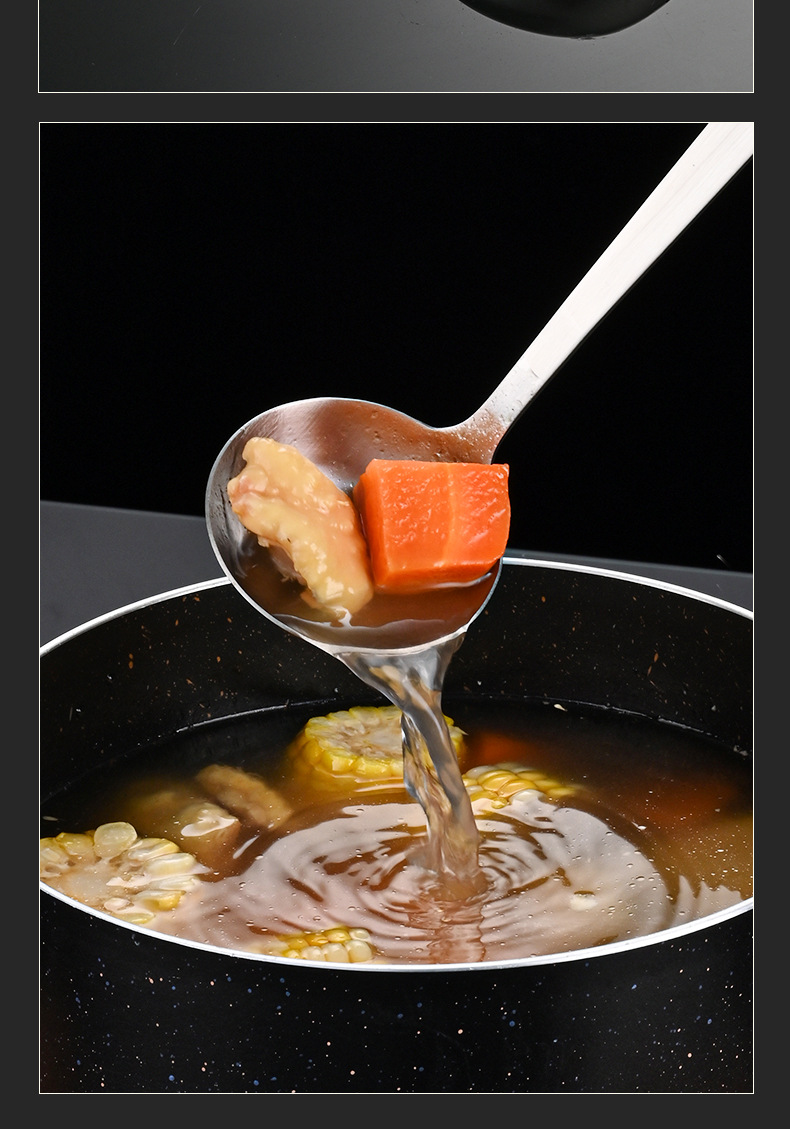국경 간 내구성 스테인레스 스틸 냄비 스푼 긴 손잡이 수프 쉘 소쿠리 두꺼운 주방 식기 매트 걸이형 스푼