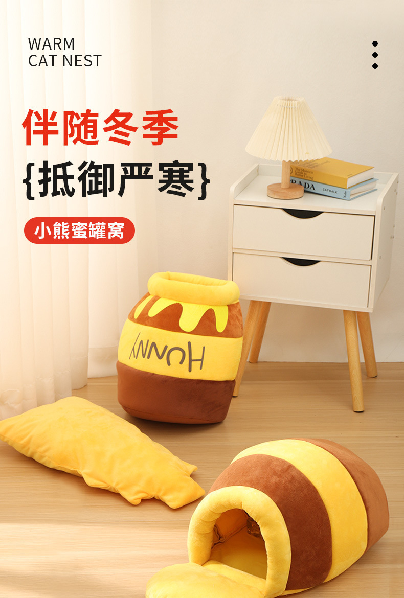 새로운 애완동물 고양이집 강아지집 두꺼운 귀여운 겨울용 밀폐형 허니팟 수면 매트 탈부착 가능한 고양이집 강아지 고양이용스토어 가기