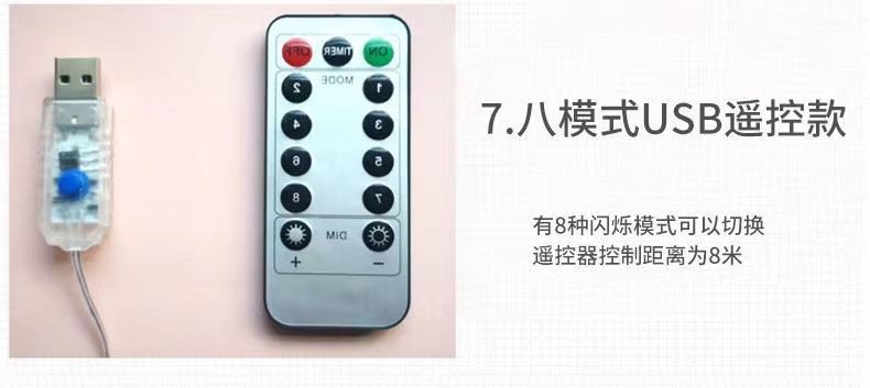 • 8가지 모드를 갖춘 5.5m개의 조명 USB 원격 제어 모델