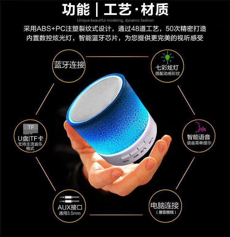 다채로운 조명 무선 블루투스 오디오 서브 우퍼 미니 플러그인 자동차 휴대 전화 컴퓨터 야외 휴대용 소형 스피커