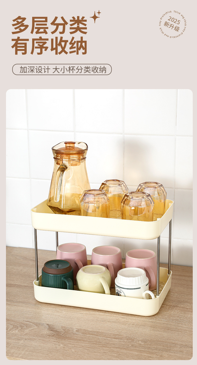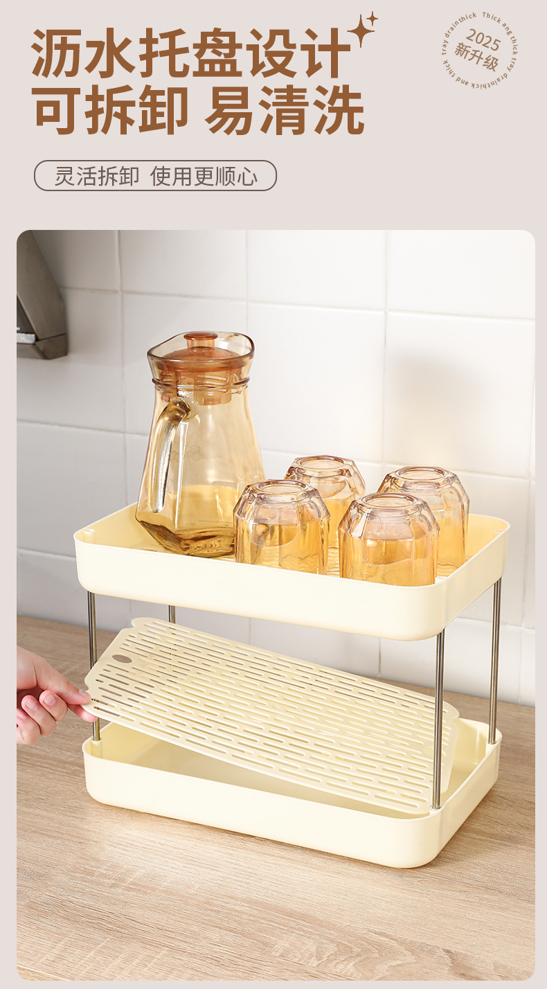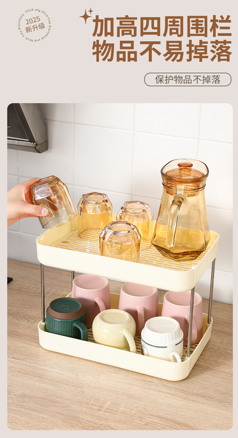 배수판이 있는 가정용 데스크탑 스토리지 랙 주방 조리대 다기능 스토리지 랙 라이트 럭셔리 레드 와인 컵 랙