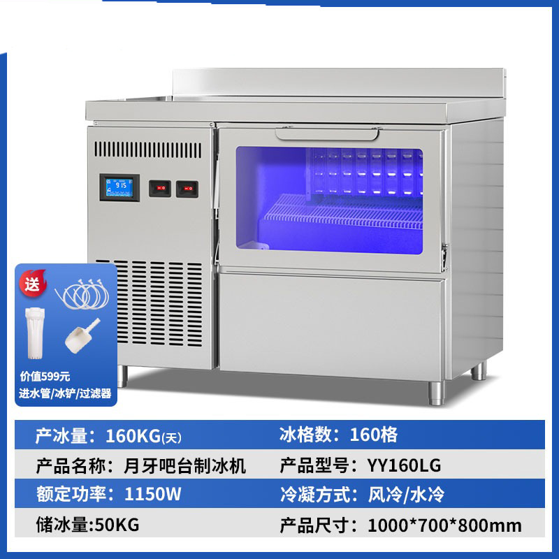 • 160 그리드 크레센트 아이스사이드 블루 라이트 유리 도어 바 테이블(일일 2240컵 - 대형 매장에서 구매 권장)