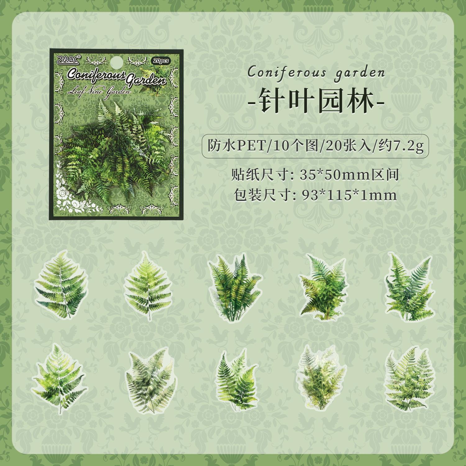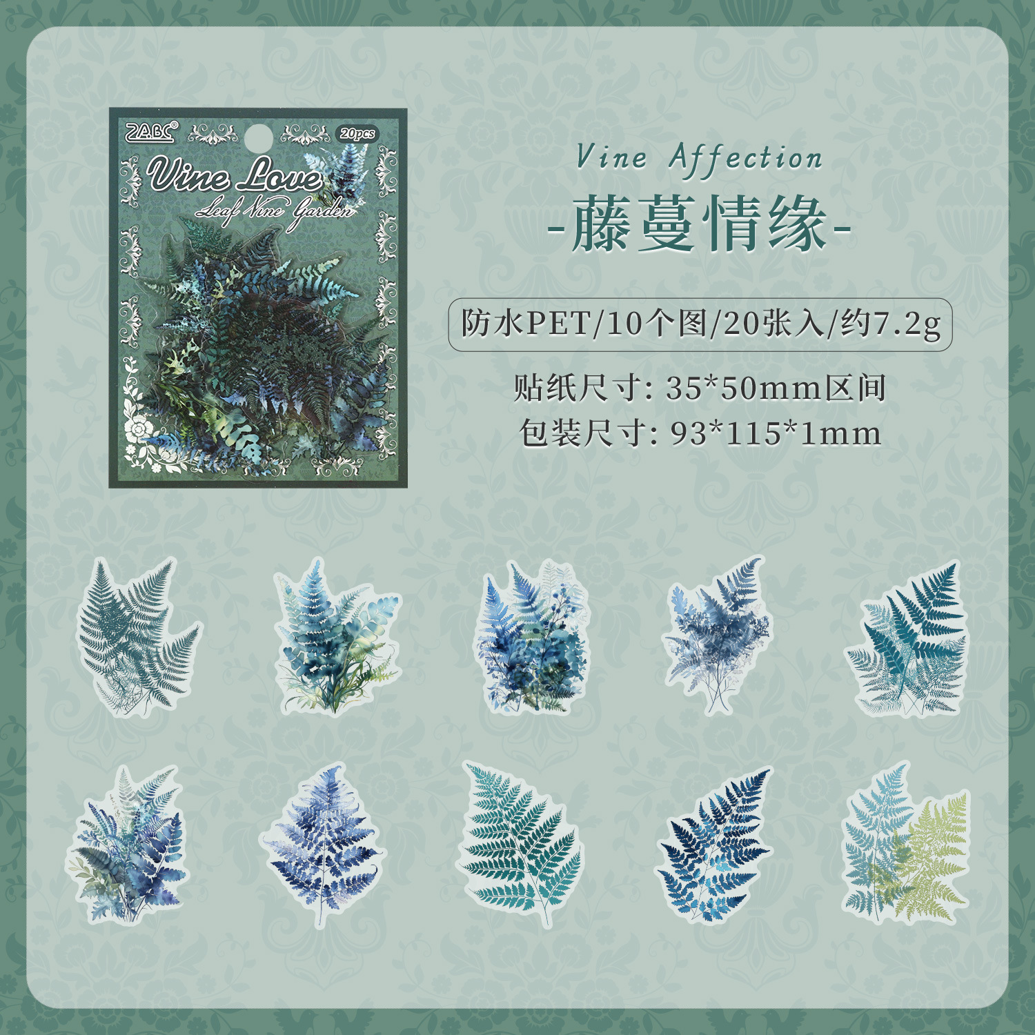 국경 간 ZABC 스티커 리프 등나무 정원 시리즈 식물 테마 DIY 핸드북 장식 스티커 6 가지 옵션으로 20 개