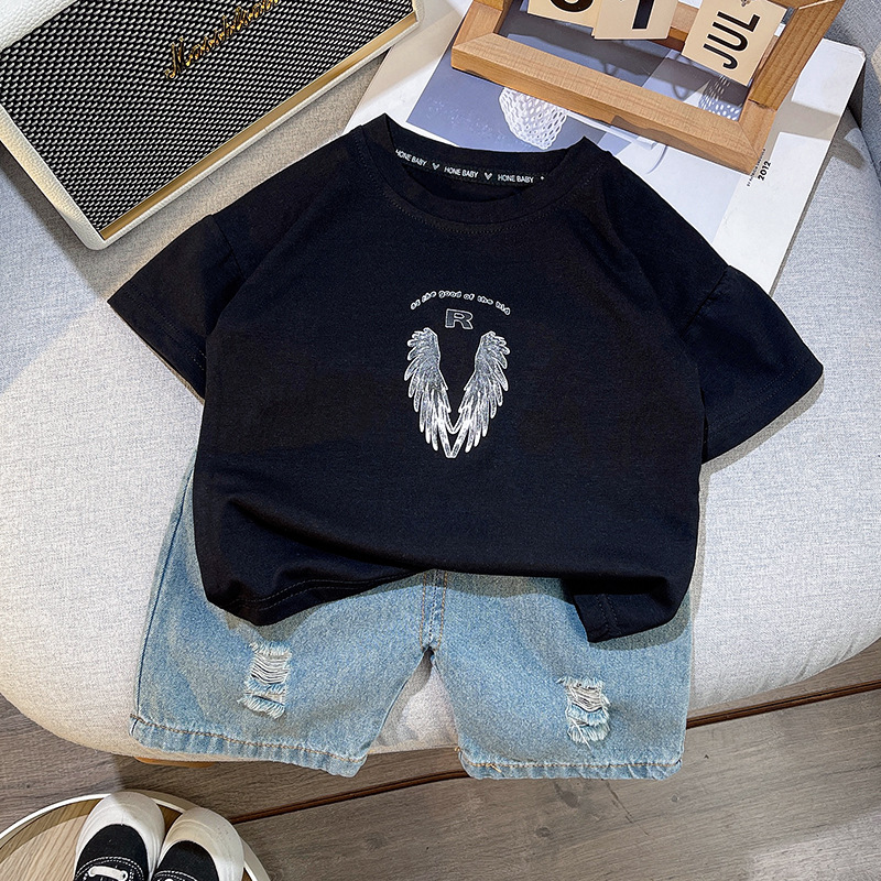 소년 정장 반팔 2025 새로운 스타일 어린이 소년 패션 느슨한 잘 생긴 반팔 날개 탑 크로스 보더스토어 가기