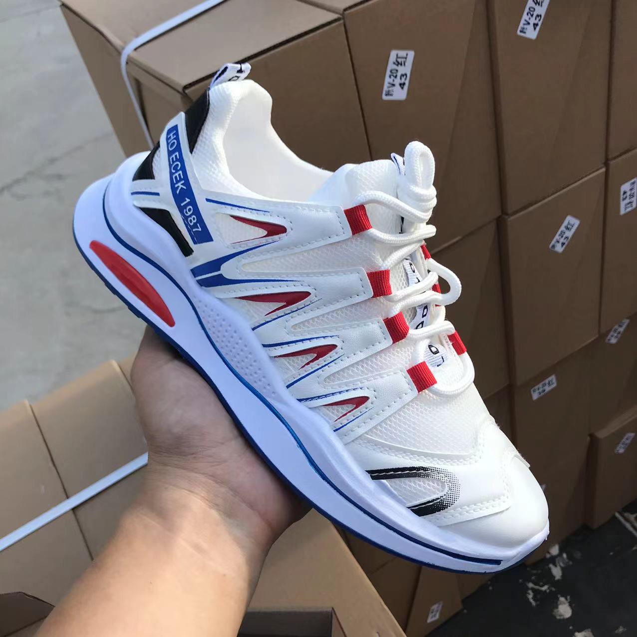 두꺼운 밑창, 키가 크고 편안한 운동화, 도매 경량 컬러 블록 로우탑 트렌디 슈즈, 레이스업 메쉬 통기성 남성화, 크로스보더 스타일스토어 가기