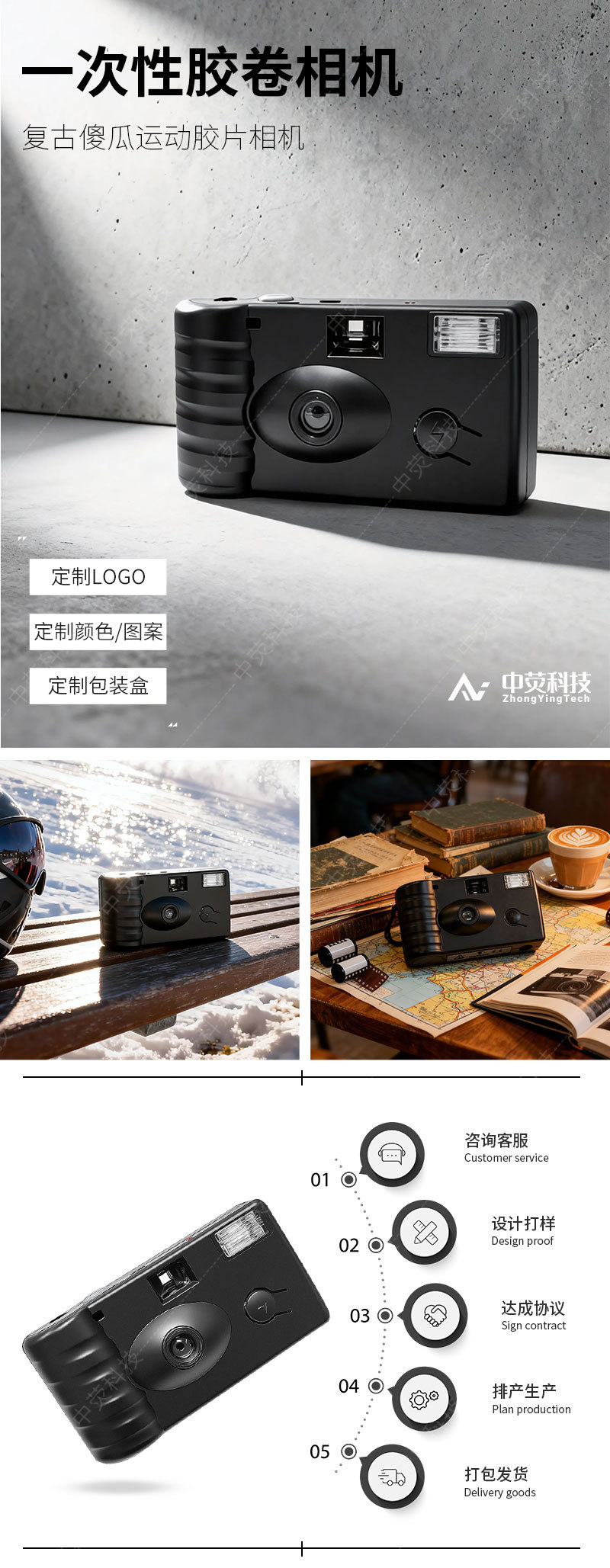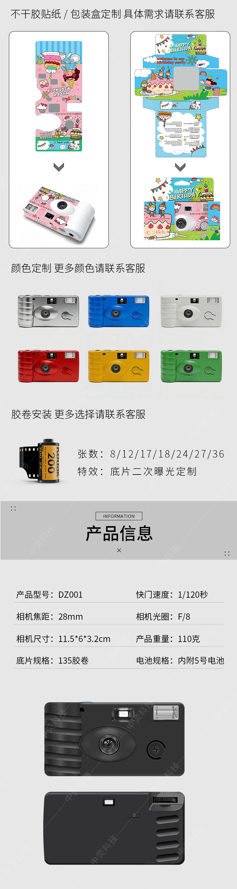 일회용 필름 카메라, 복고풍 포인트 앤 슛 카메라, 외부 포장 카메라 색상 필름 지원, 6~36장 가능