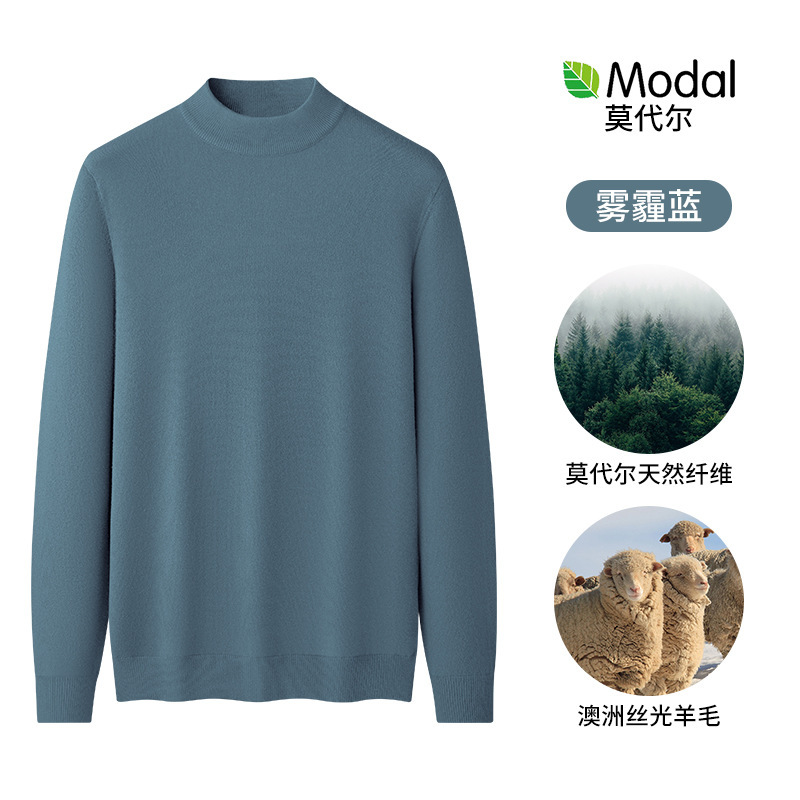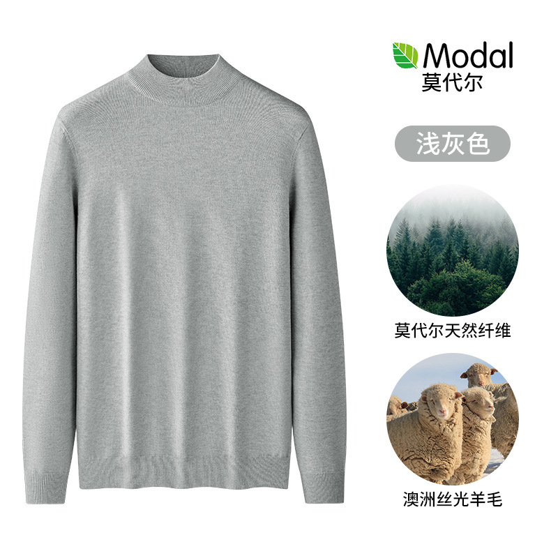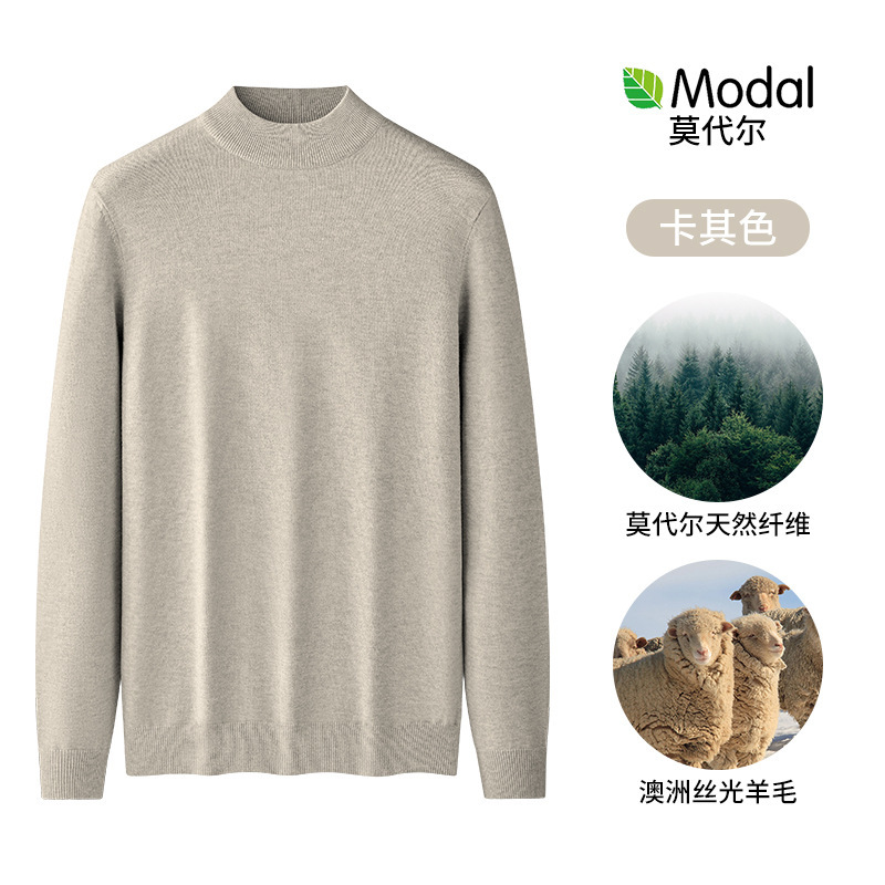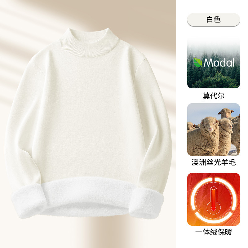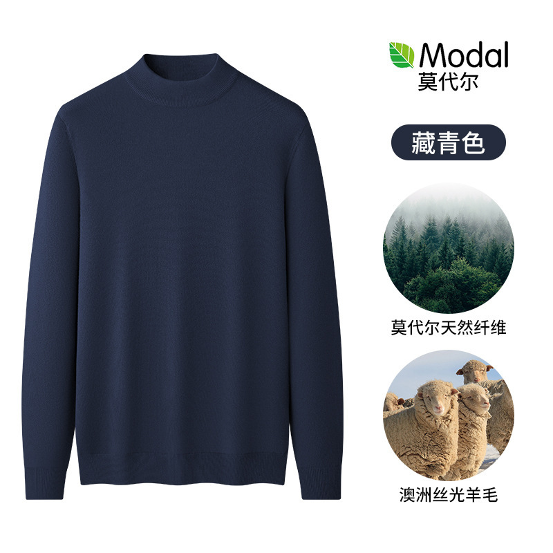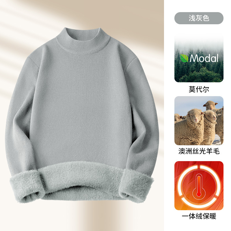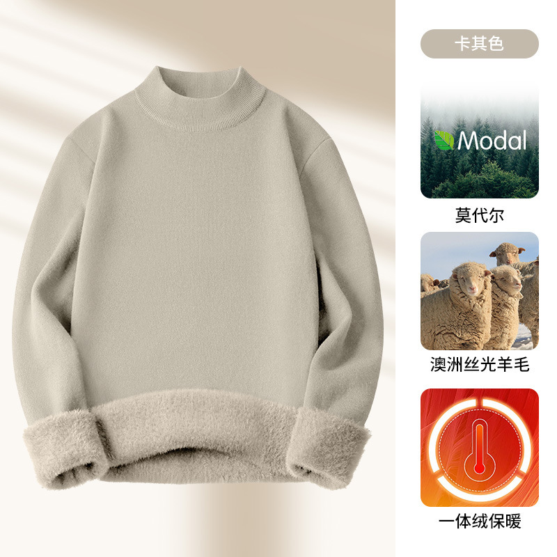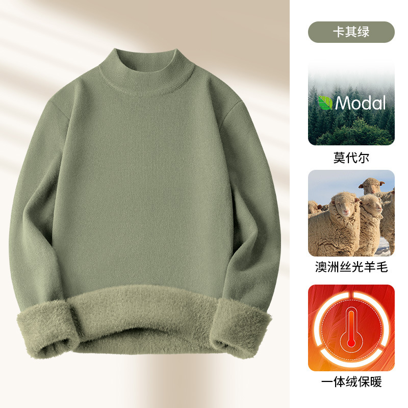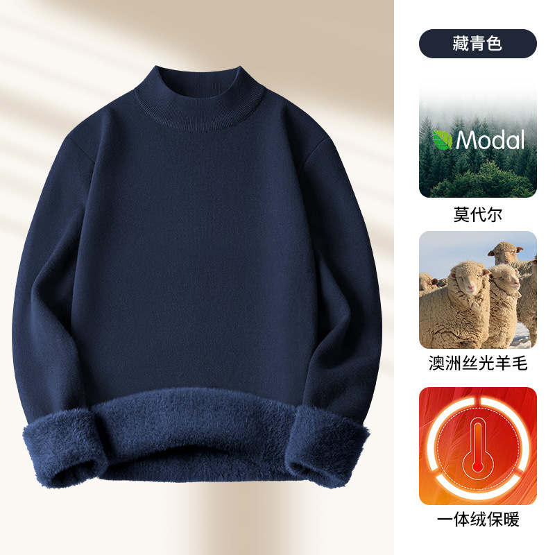 모달 하프 터틀넥 남성용 스웨터 플러스 벨벳 두꺼운 따뜻한 심플 니트 스웨터 가을 겨울 남성용 긴팔 바닥 셔츠