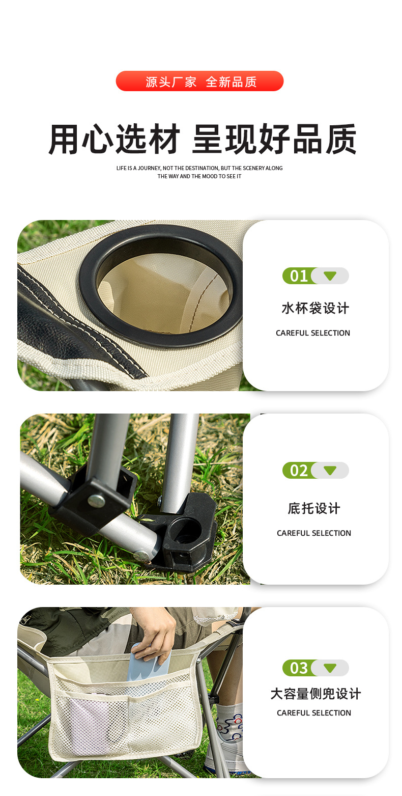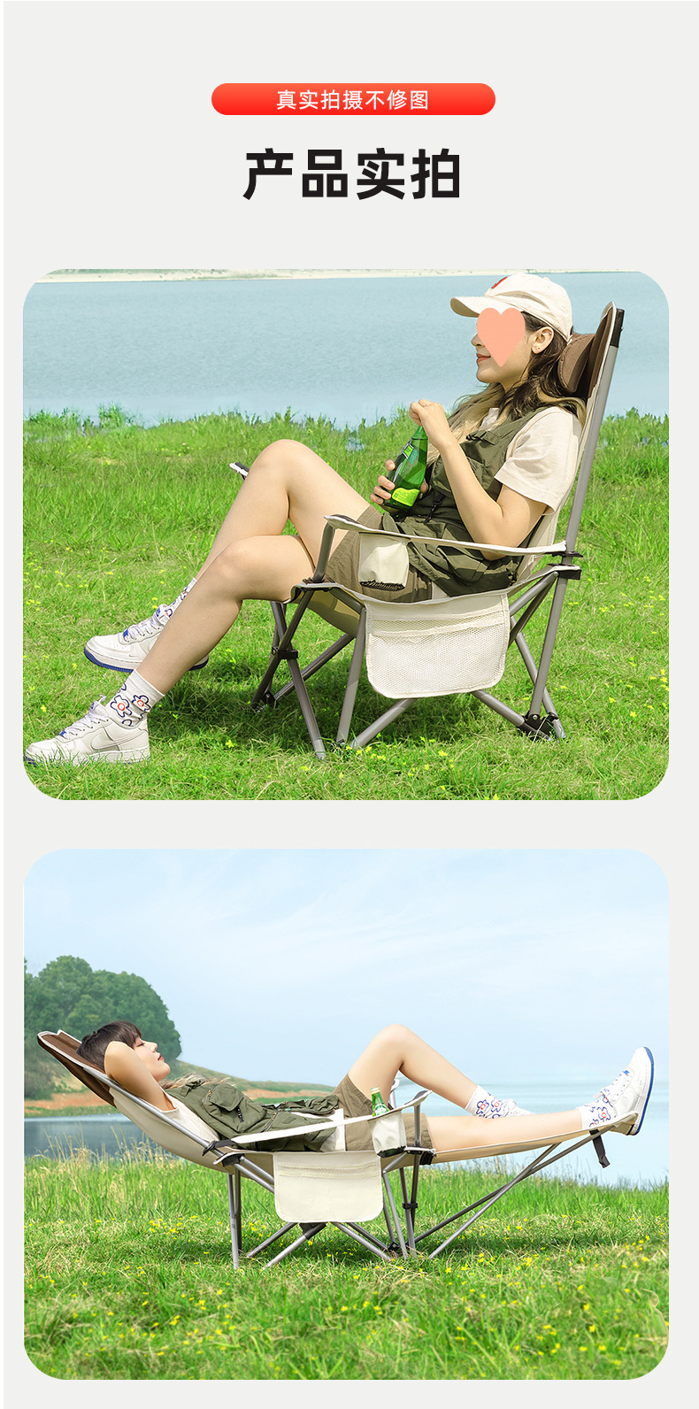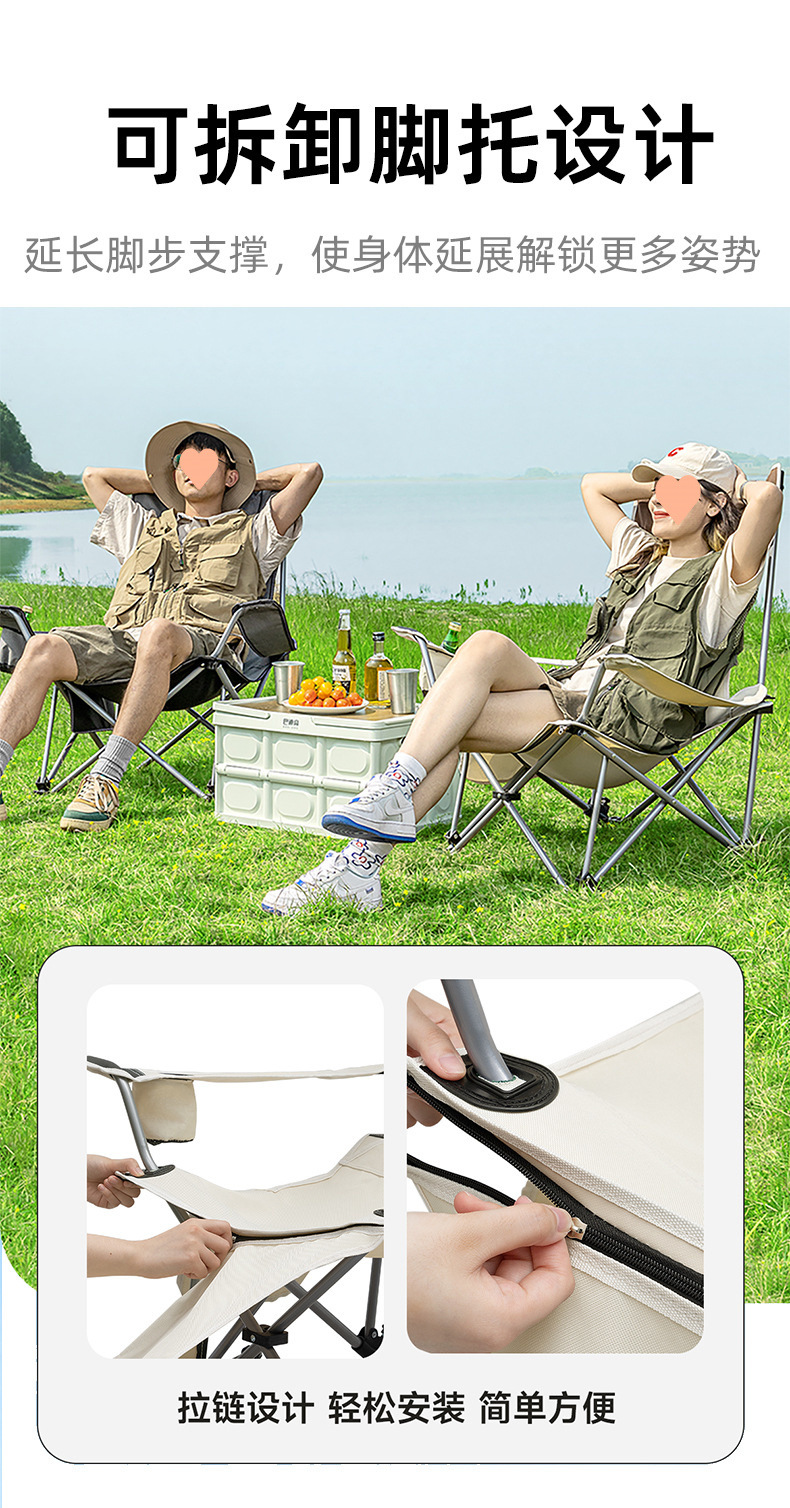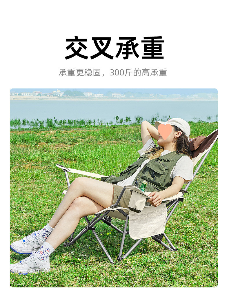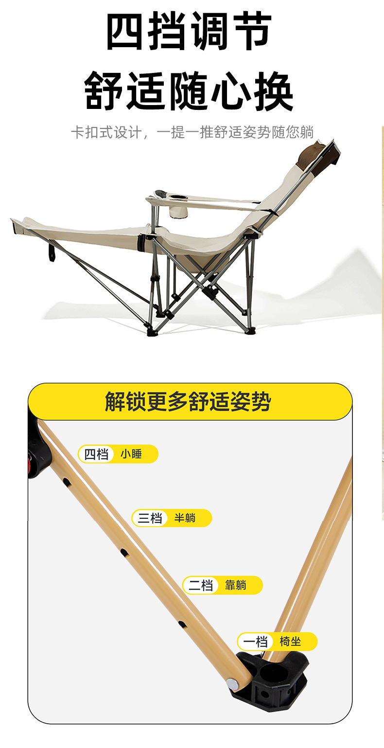 야외 접이식 달 의자, 하이백, 4단 조절, 앉고 누울 수 있는 캠핑 휴대용 안락 의자 낚시 의자 도매