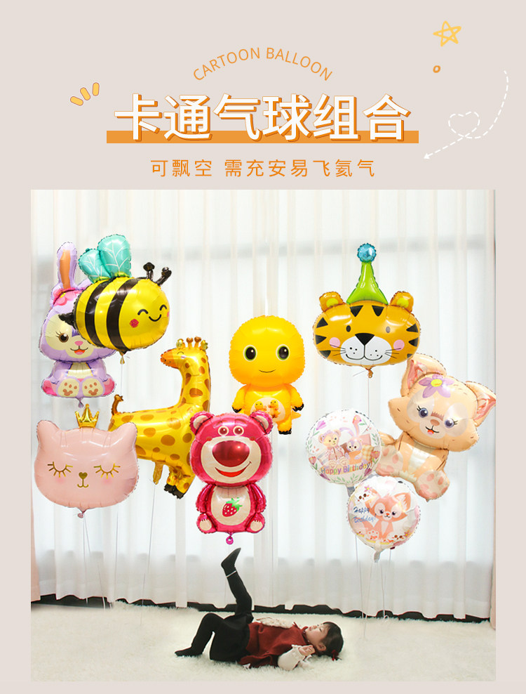 플로팅 헬륨 비행 공기 풍선 만화 알루미늄 필름 풍선 생일 플라스틱 장식 거리 판매 어린이 노점 장난감스토어 가기