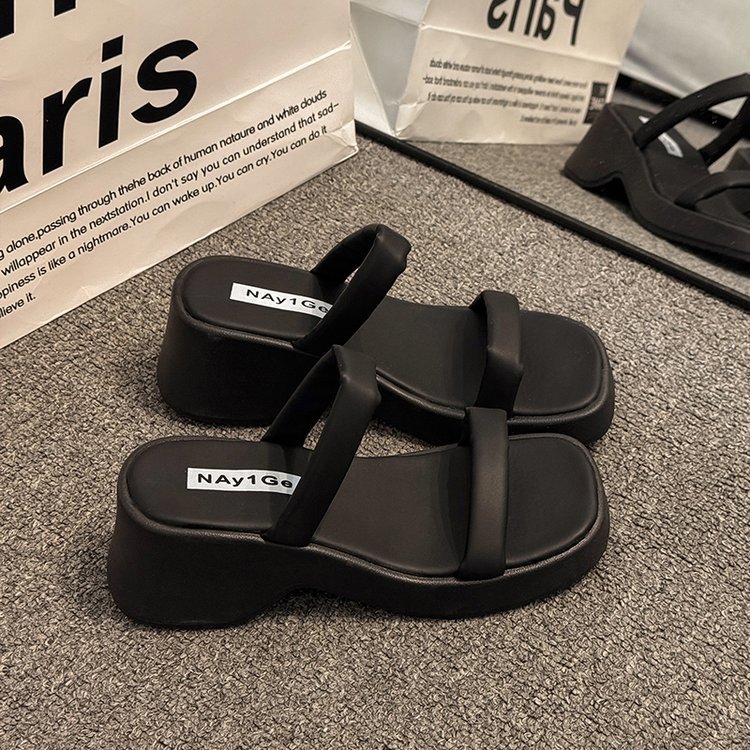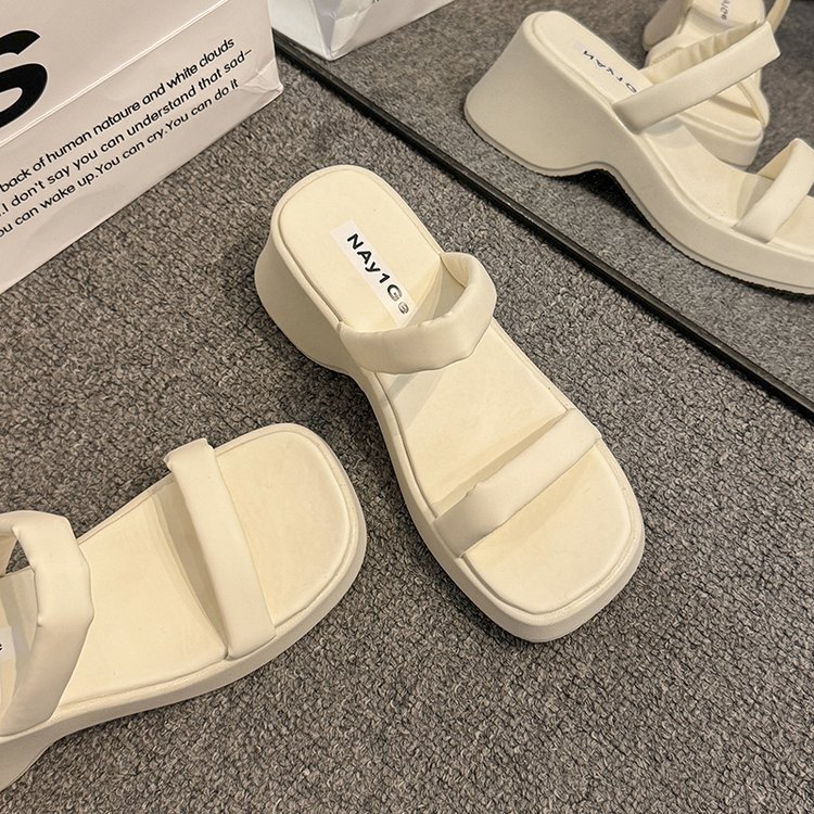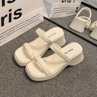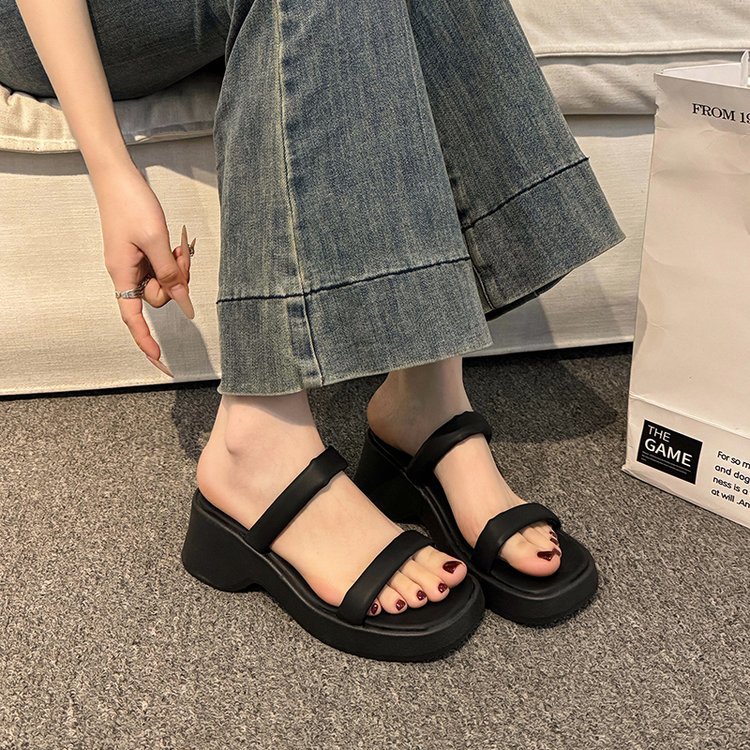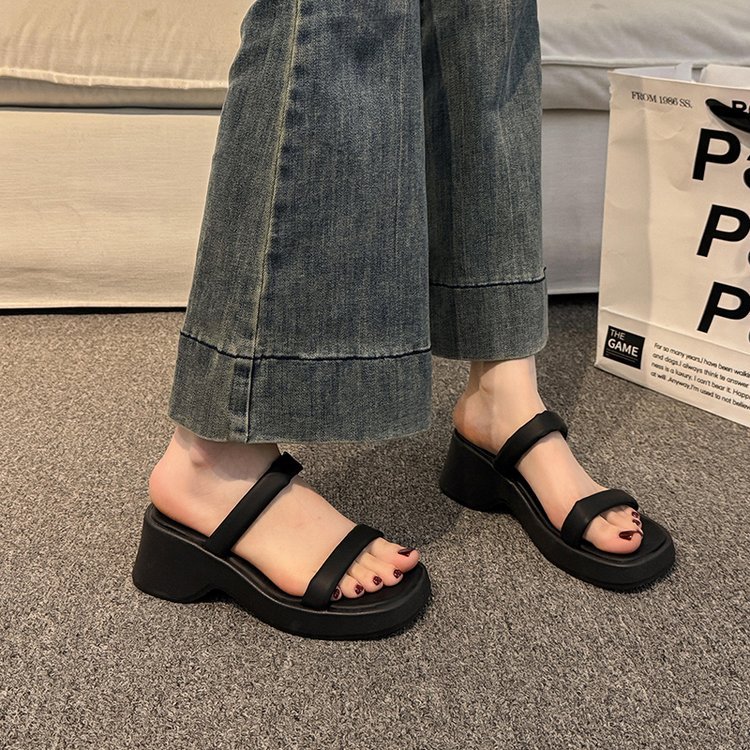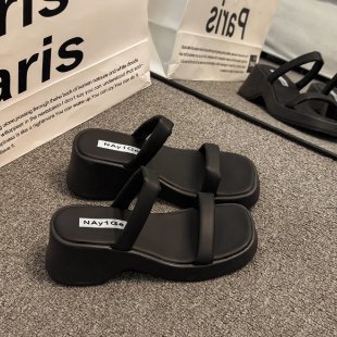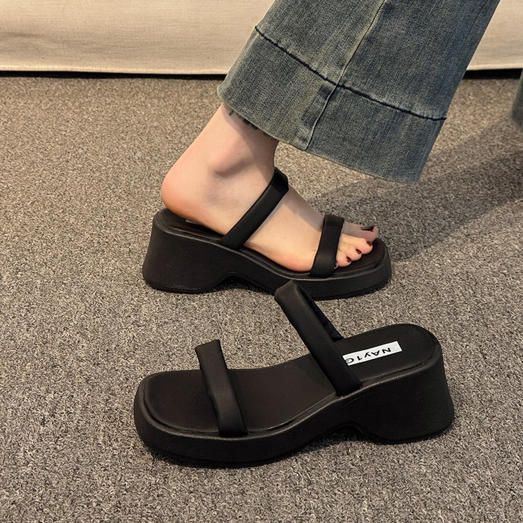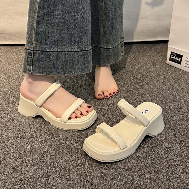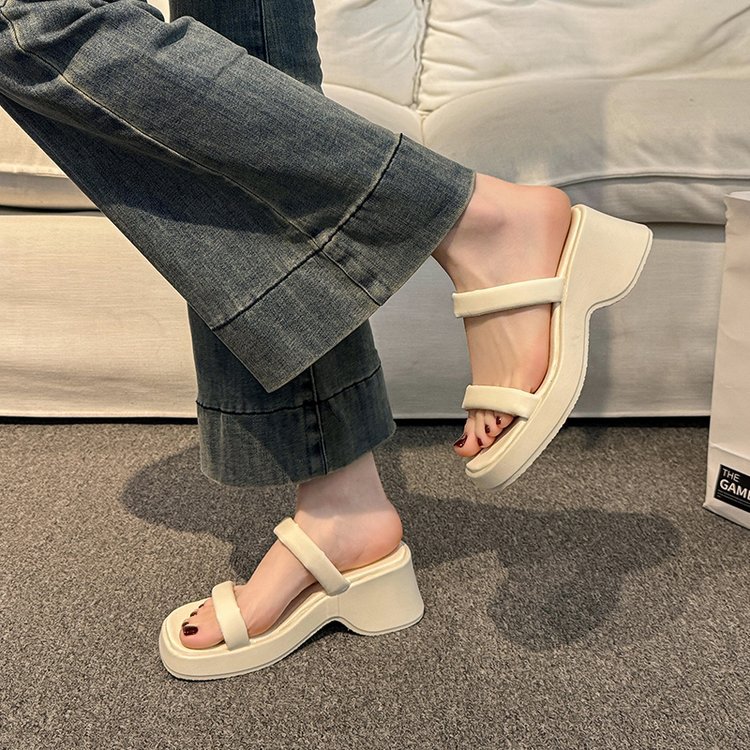 여성용 패셔너블한 두꺼운 밑창 작은 슬리퍼, 2025년 여름 신상 슬리퍼, 웨지힐 하이힐 슬리퍼스토어 가기