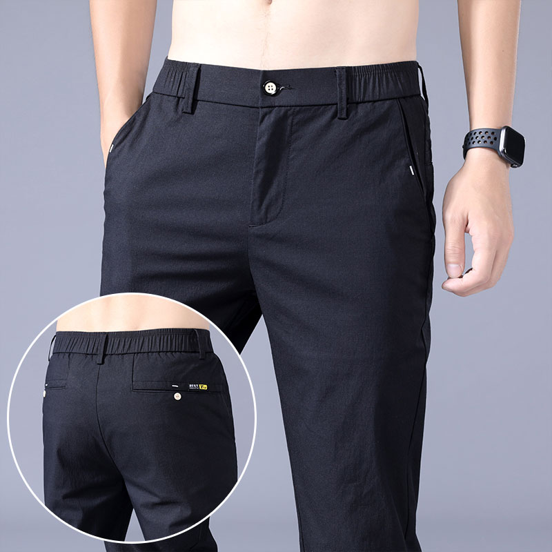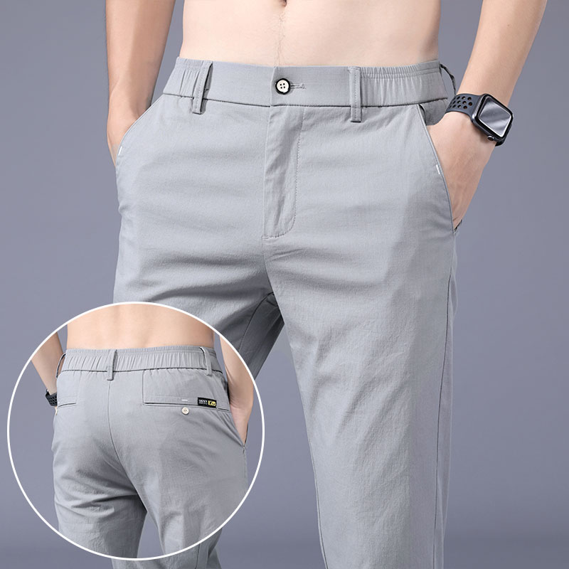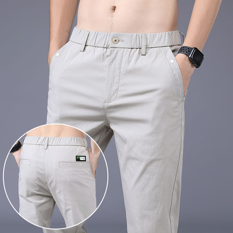 남성 캐주얼 바지 여름 얼음 실크 얇은 정장 바지 남성 바지 여름 속건 스포츠 슬림 스트레이트 바지 남성