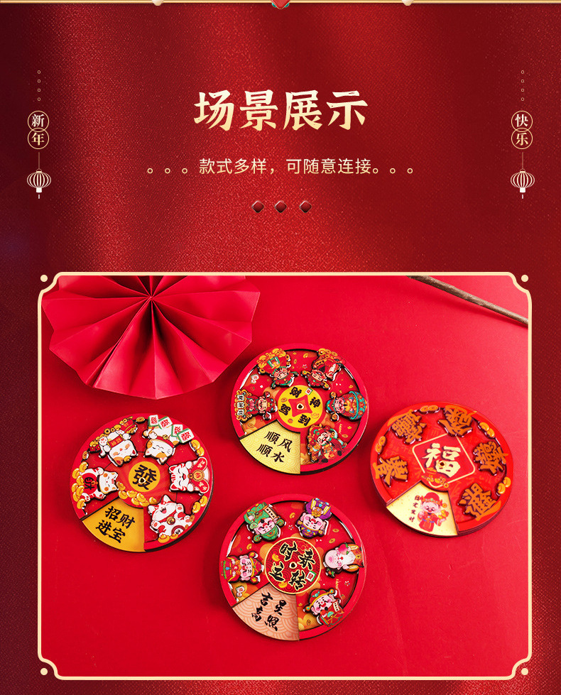 부의 신 냉장고 자석 새해 회전 만화 자석 스티커 국가 트렌드 문화 및 창의적 기념품 창의적인 행운의 고양이 회전판 스티커스토어 가기