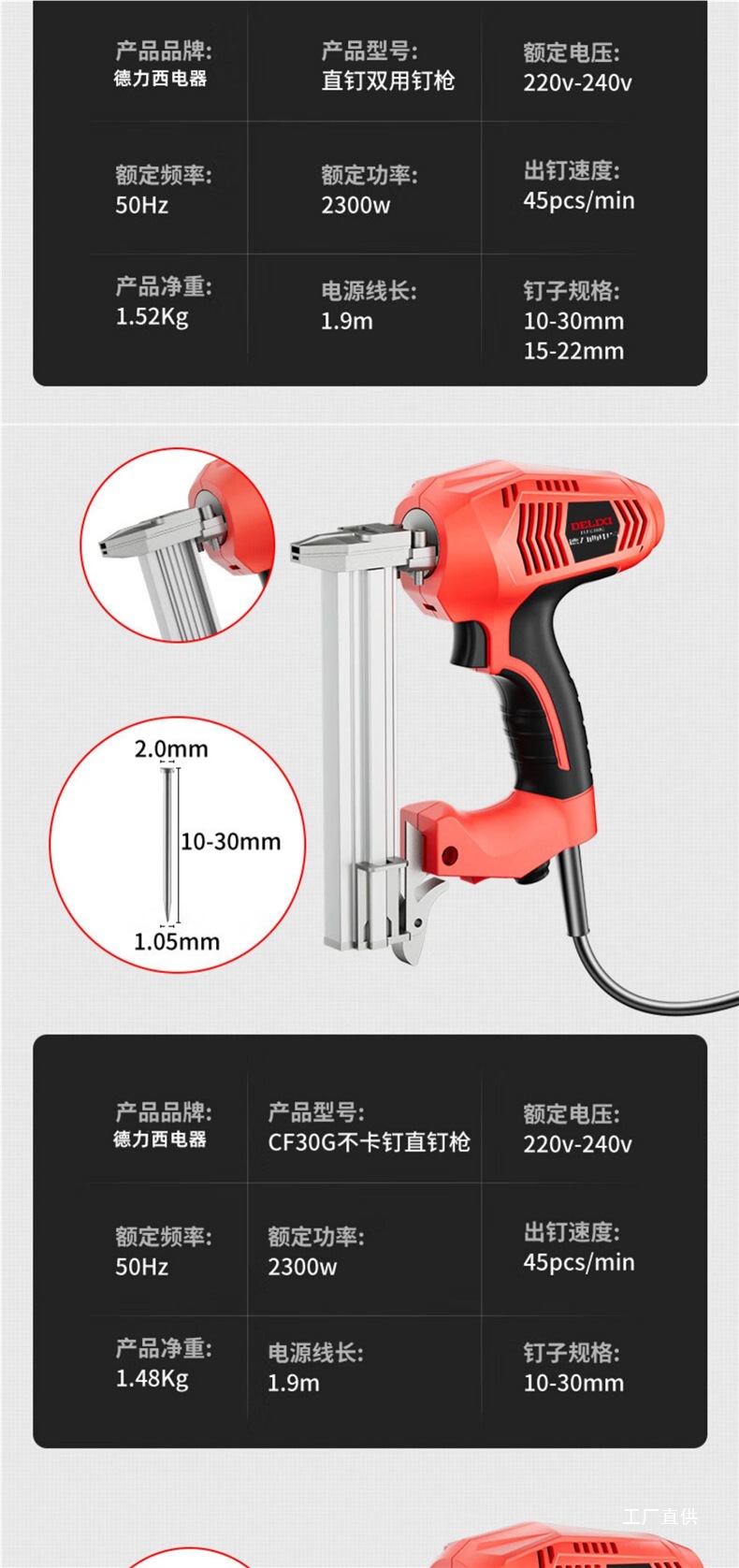 Delixi 전기 네일 건 목공 네일 건 이중 목적 가정용 스트레이트 네일 건 F30 스트레이트 네일 건 특수 Junxia