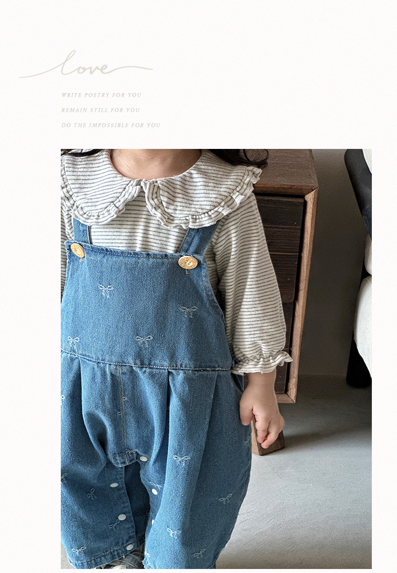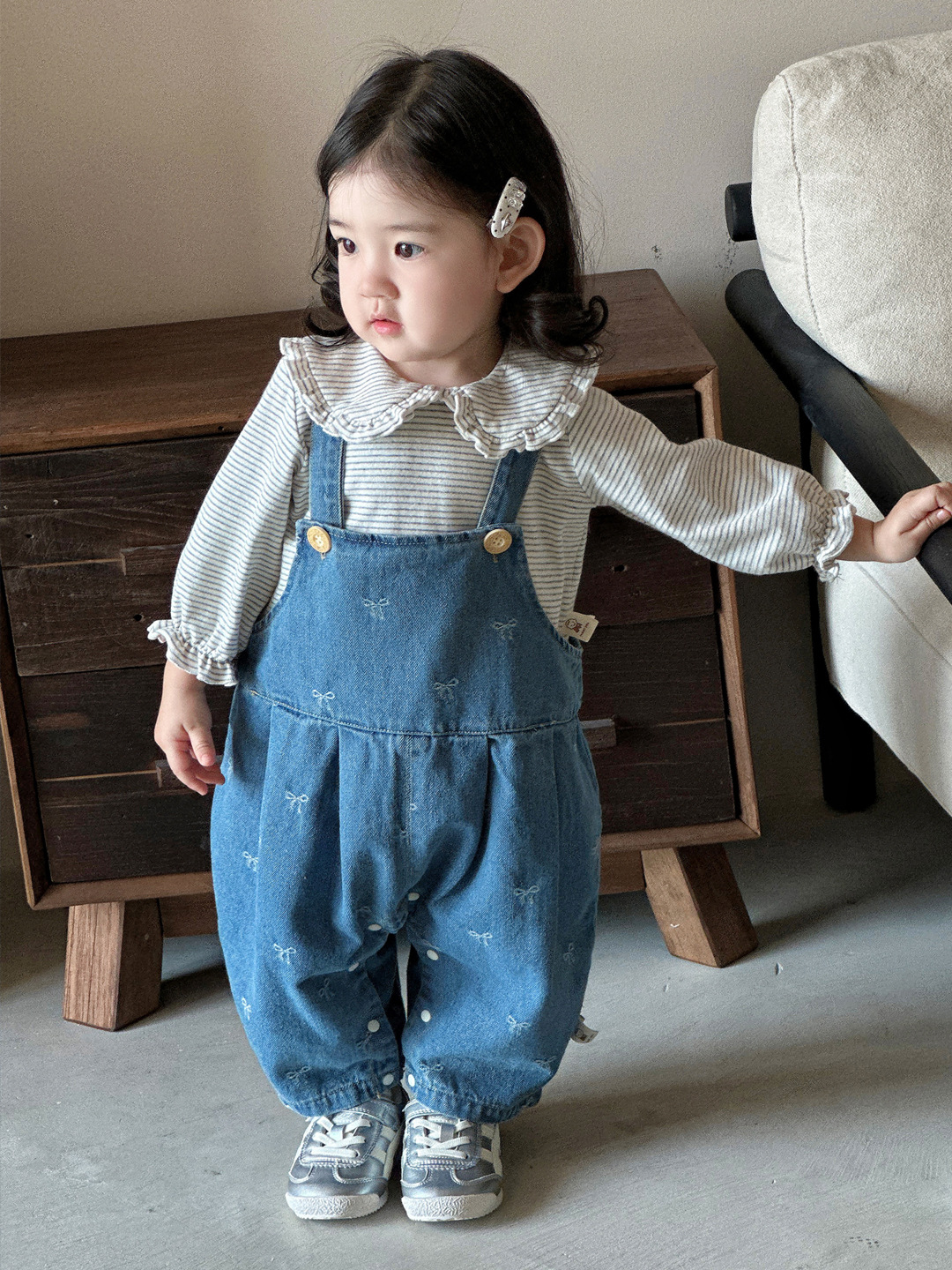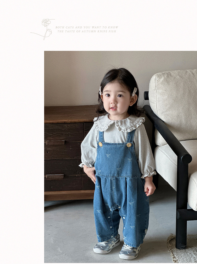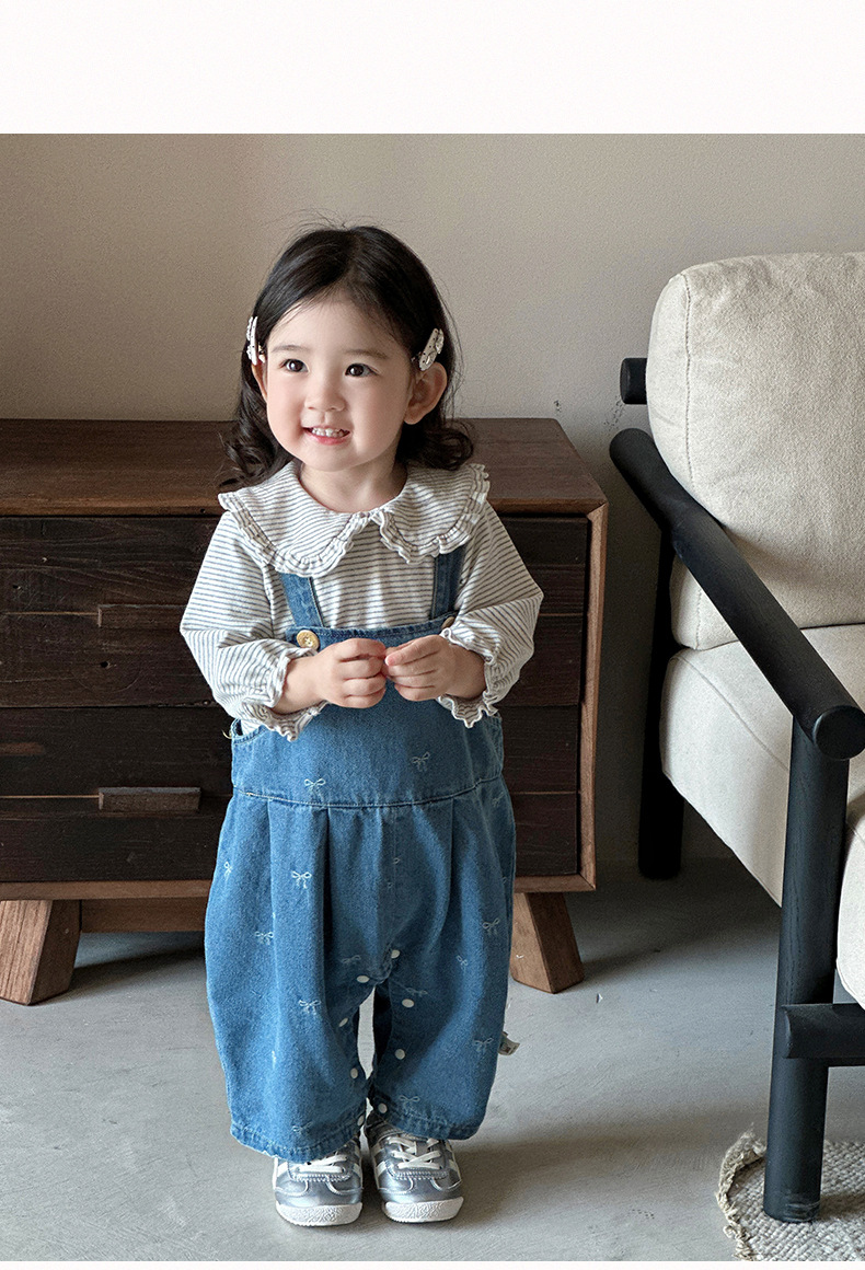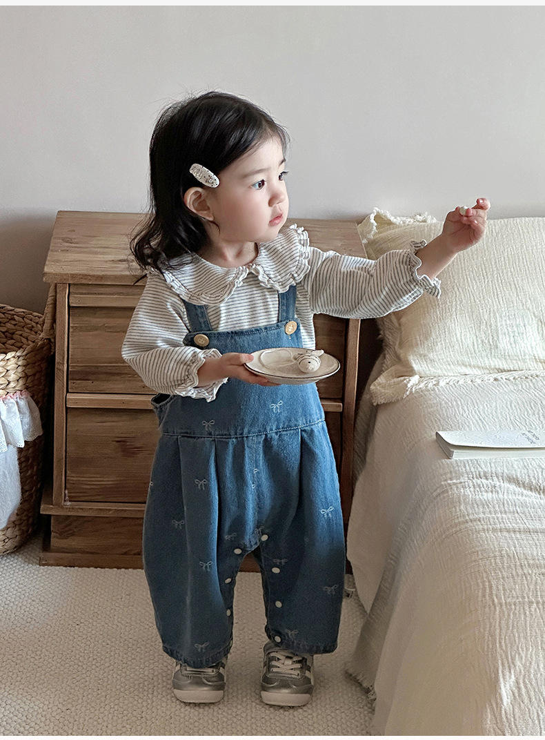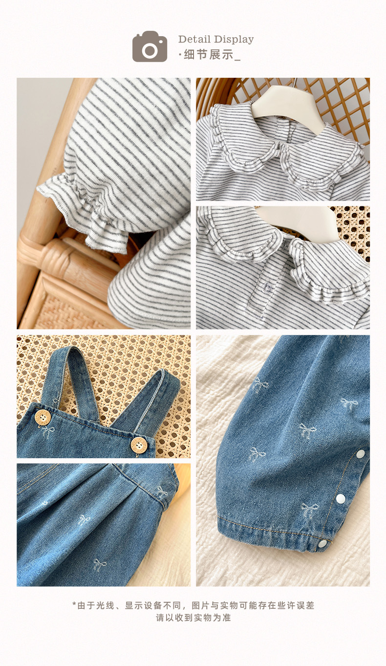 한국식 베이비슈트, 봄, 가을 여아 A형 나비데니메이즈 오버올 + 하의 셔츠 투피스 외출복