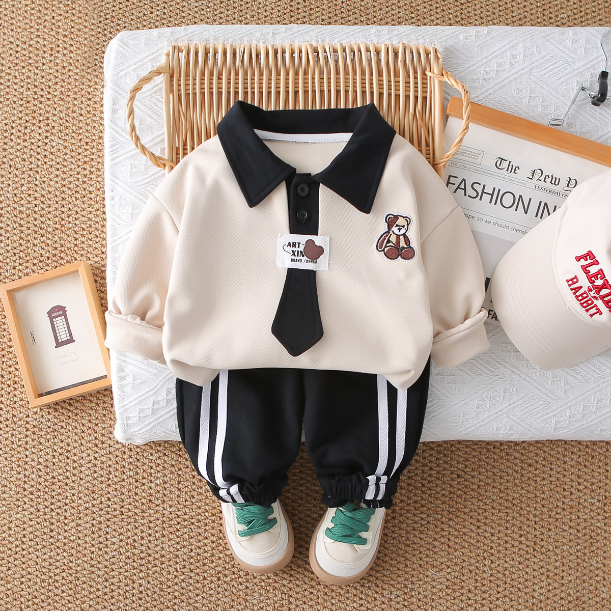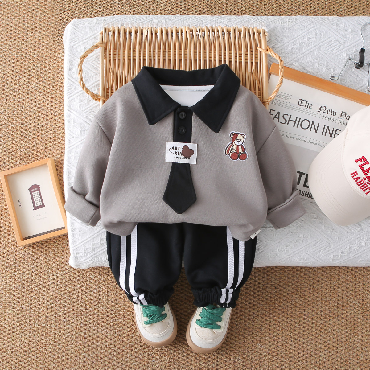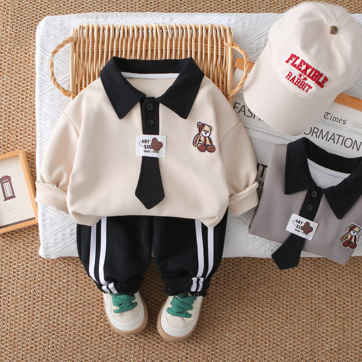 대외 무역 아동 의류 소년 봄 대학 스타일 정장 2025 새로운 스타일 아기 소녀 아동 운동복 넥타이 투피스 세트스토어 가기