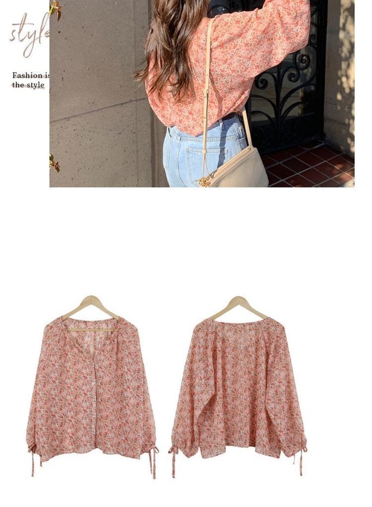 여성을위한 꽃 태양 보호 셔츠 여름 2025 새로운 작은 셔츠 부드러운 스타일 느슨한 퍼프 슬리브 쉬폰 셔츠 얇은 탑