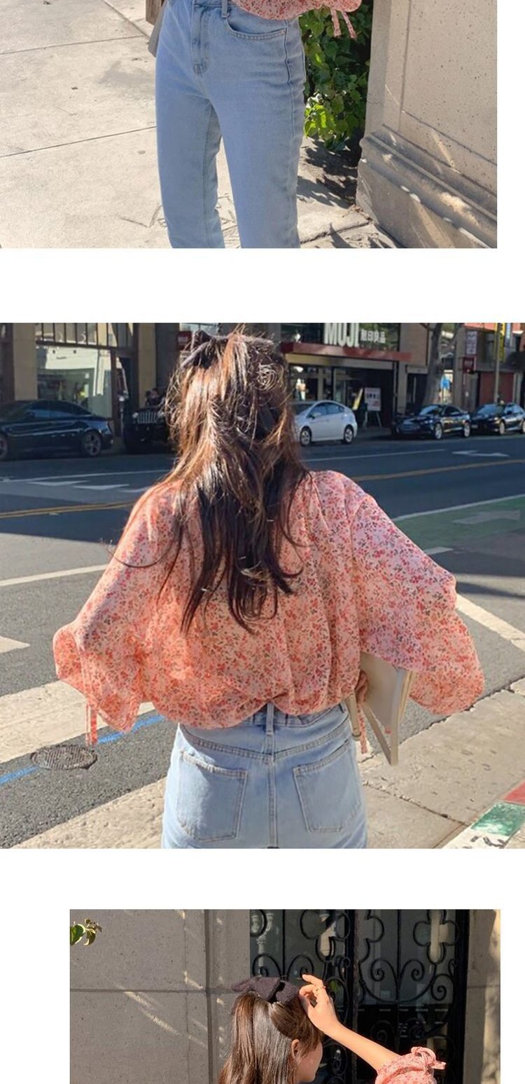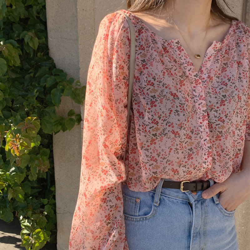 여성을위한 꽃 태양 보호 셔츠 여름 2025 새로운 작은 셔츠 부드러운 스타일 느슨한 퍼프 슬리브 쉬폰 셔츠 얇은 탑스토어 가기