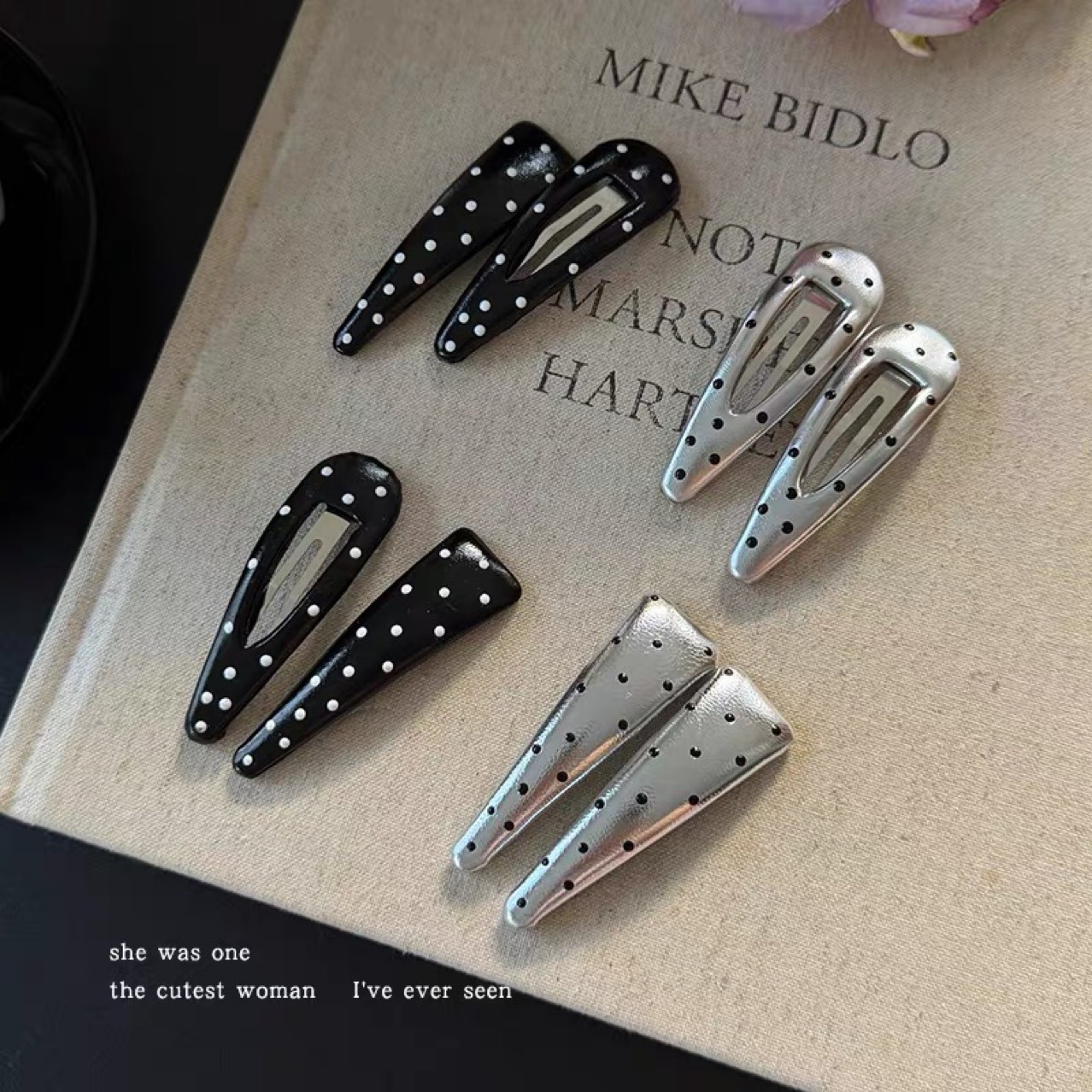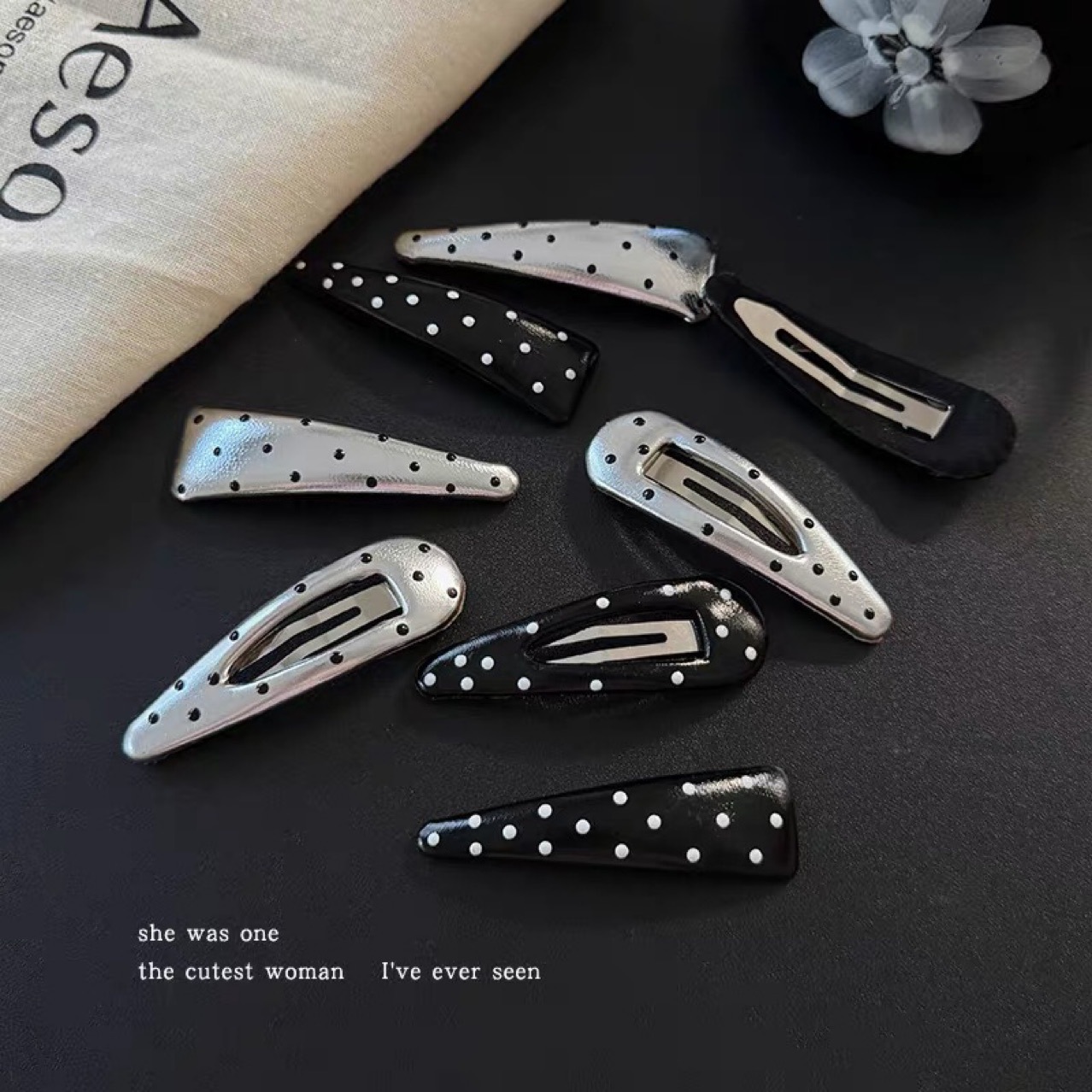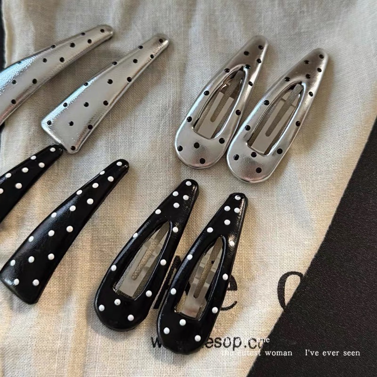 【실사】프렌치 레트로 물방울 무늬 BB 헤어핀 여성용 인스타 감성 만능 앞머리핀 앞머리 정리핀 헤어클립~스토어 가기