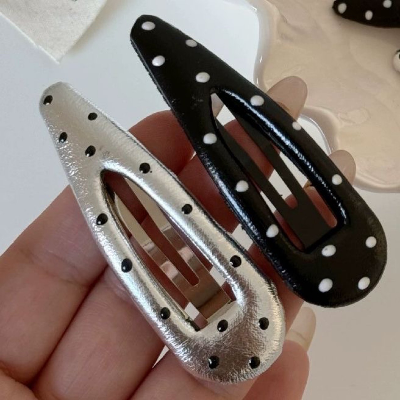 • 검은색 물방울무늬 머리핀 [재고 있음]