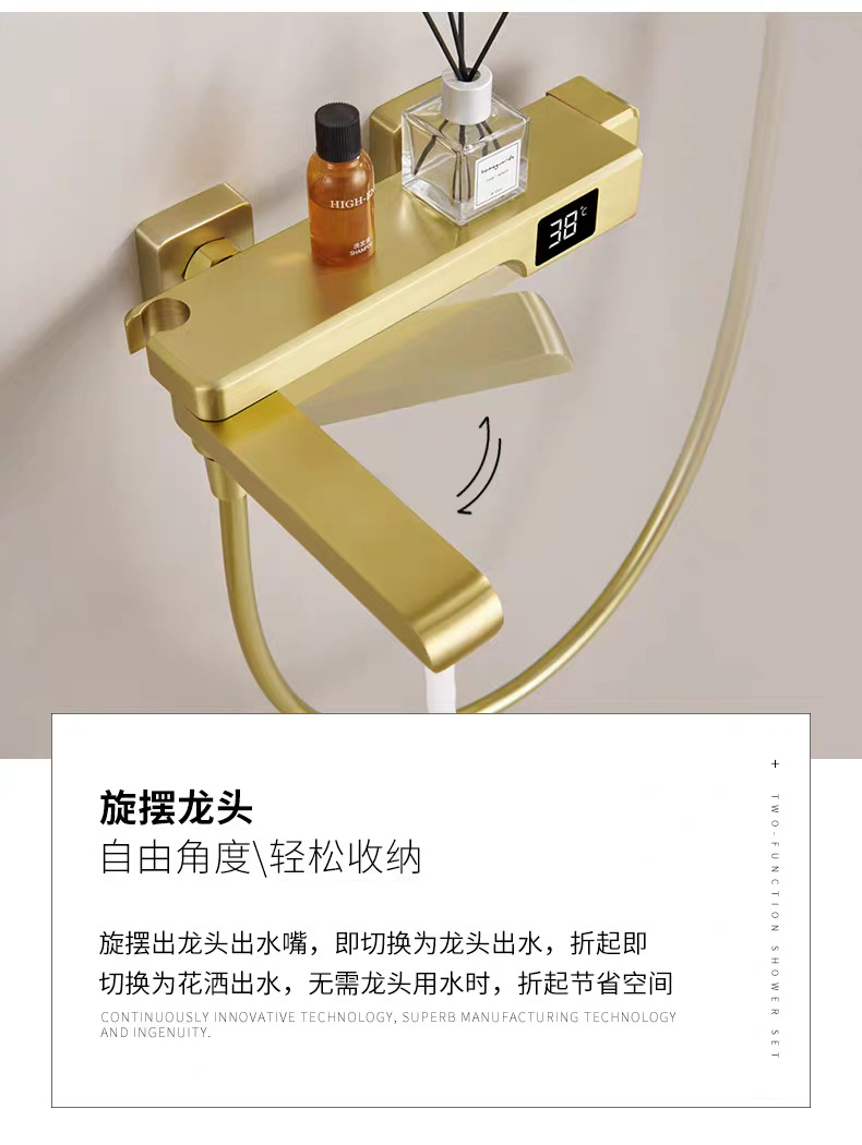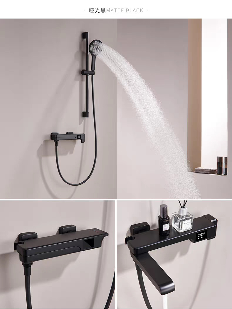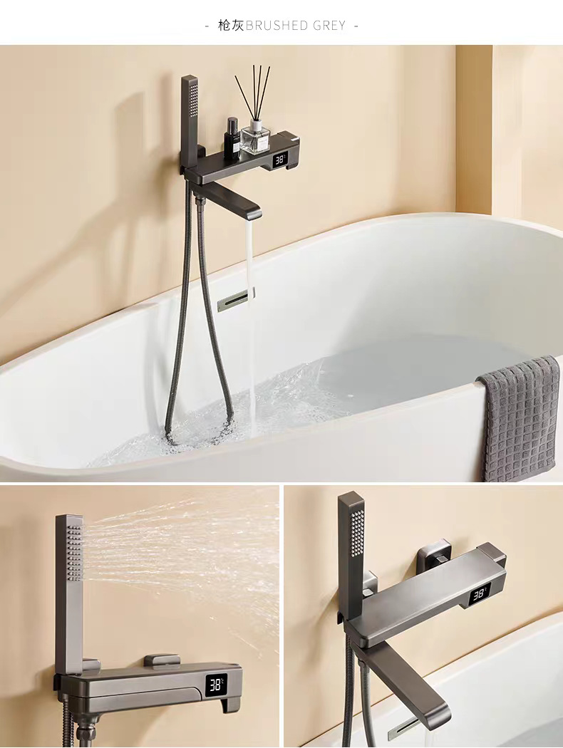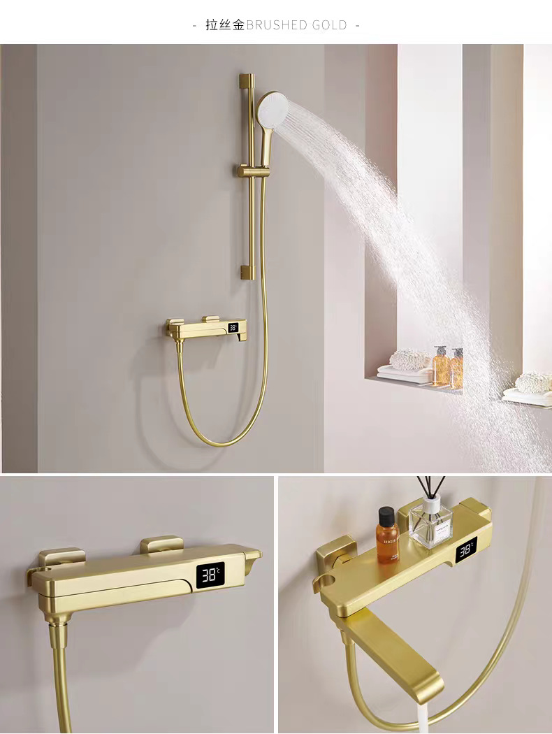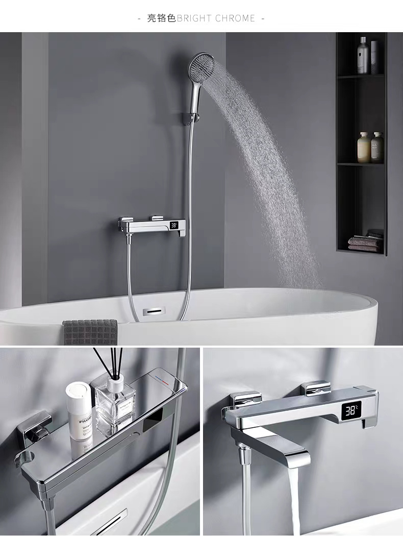 국경 간 OZON 확장 접이식 디지털 디스플레이 욕조 수도꼭지 전체 구리 소형 단순 냉온수 샤워 헤드 세트