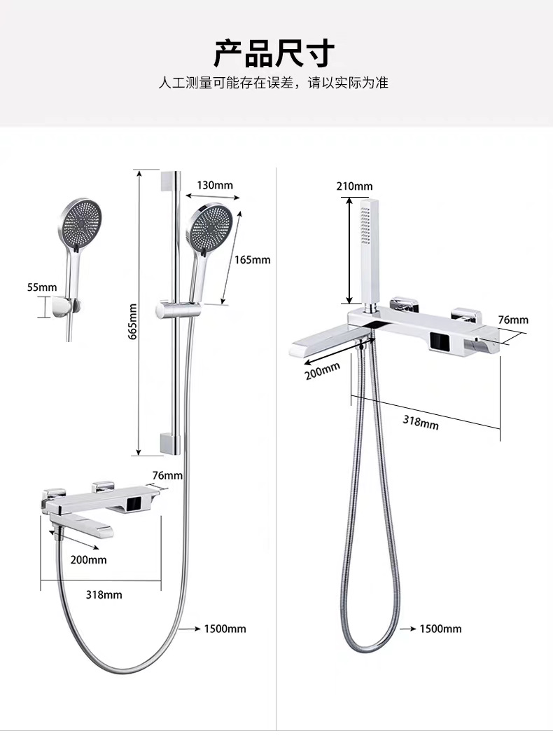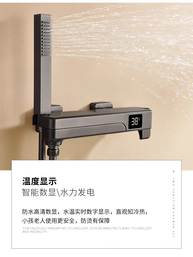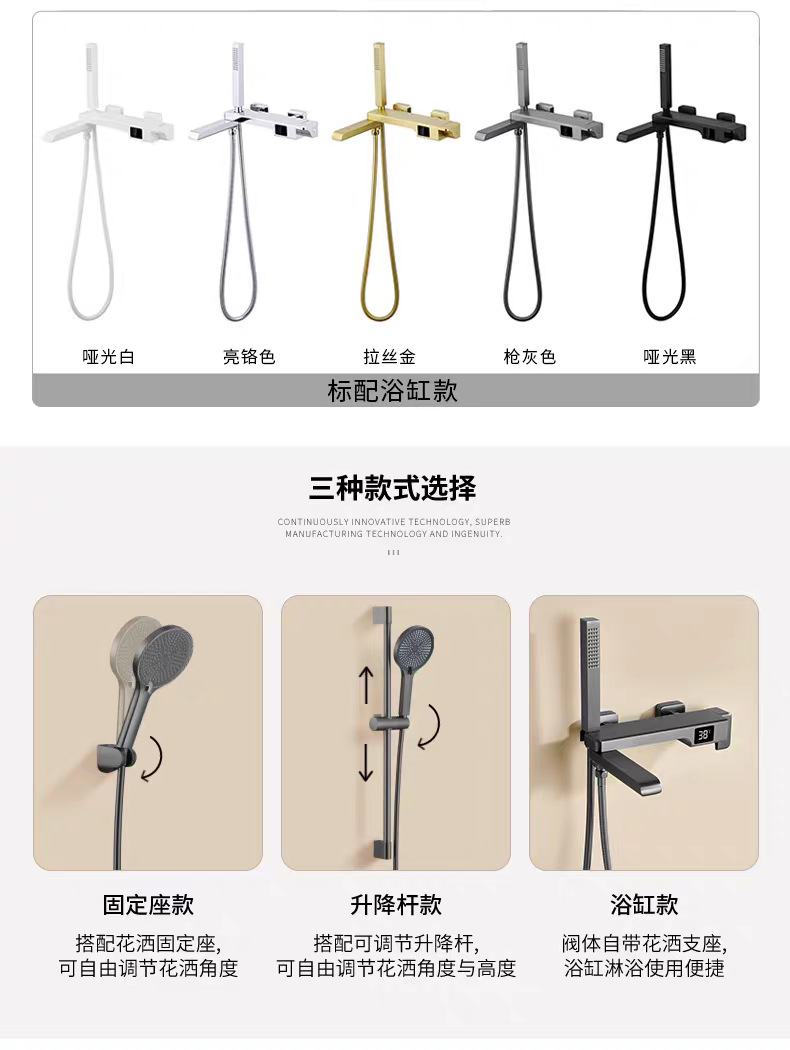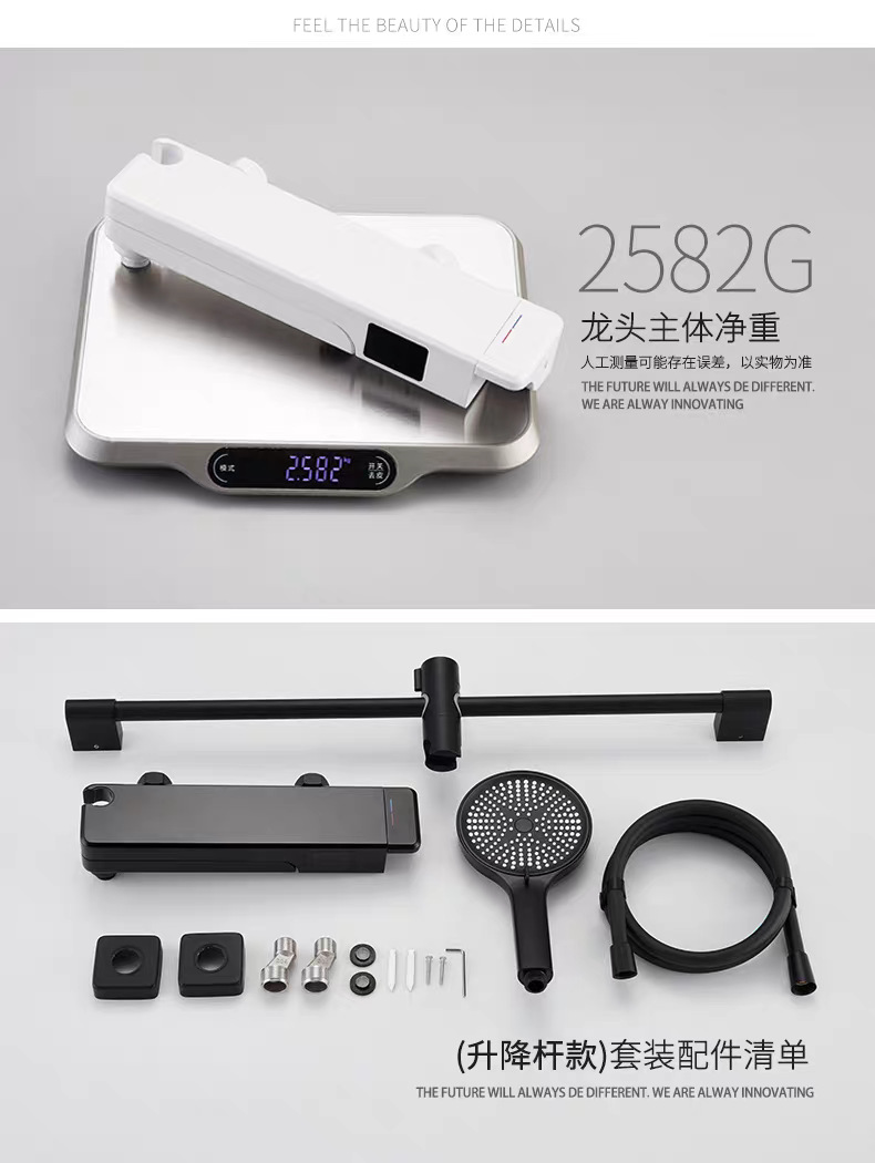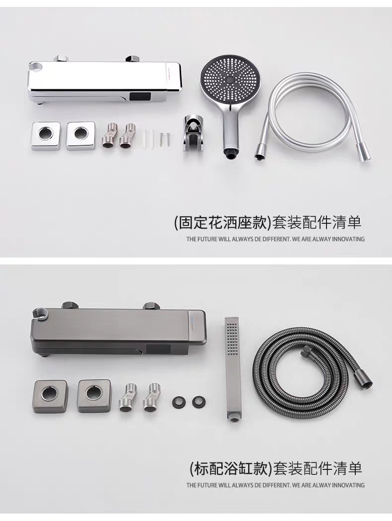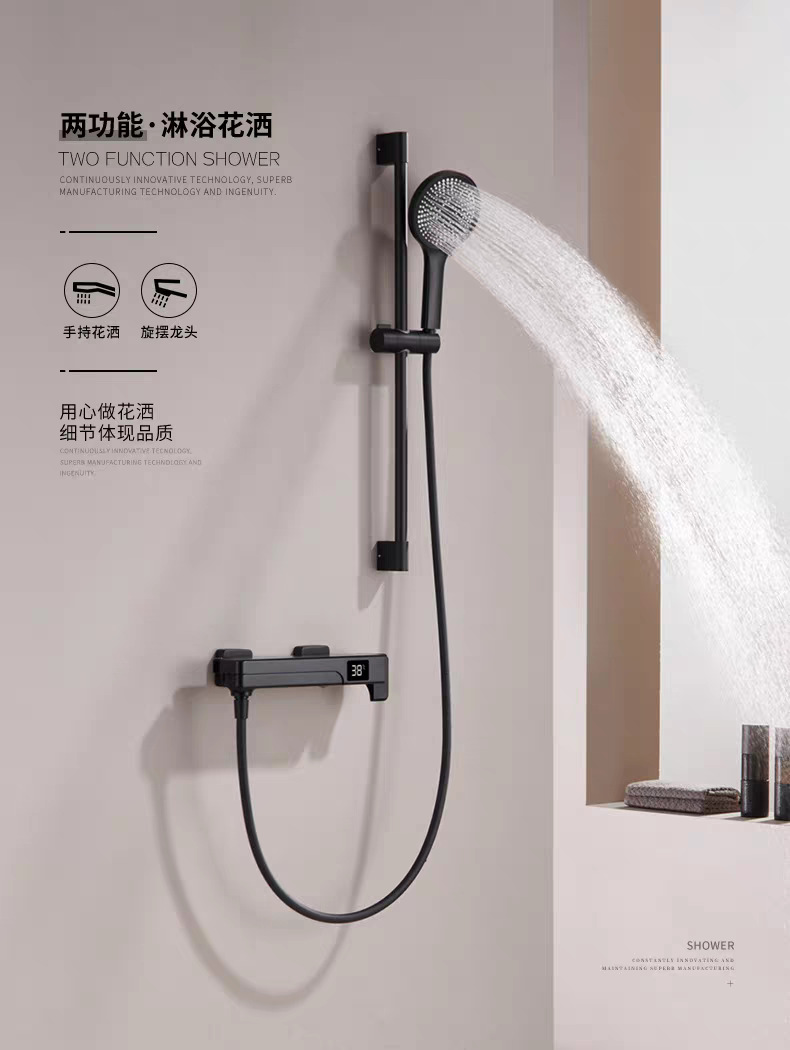 국경 간 OZON 확장 접이식 디지털 디스플레이 욕조 수도꼭지 전체 구리 소형 단순 냉온수 샤워 헤드 세트