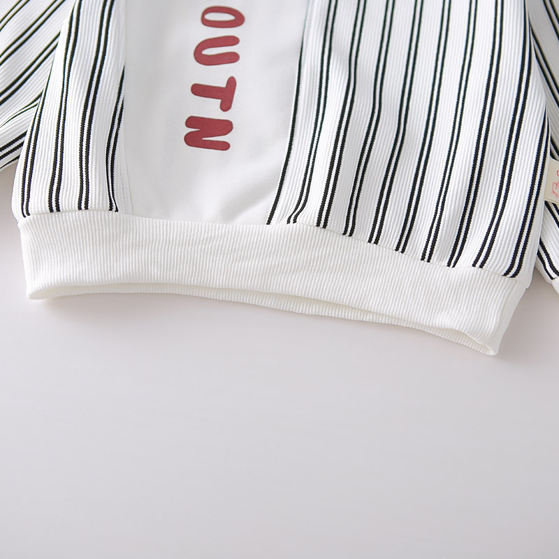 소년 봄 운동복 2024 새로운 유행 아기 유행 옷 가을 의류 어린이 세로 줄무늬 탑 투피스 세트