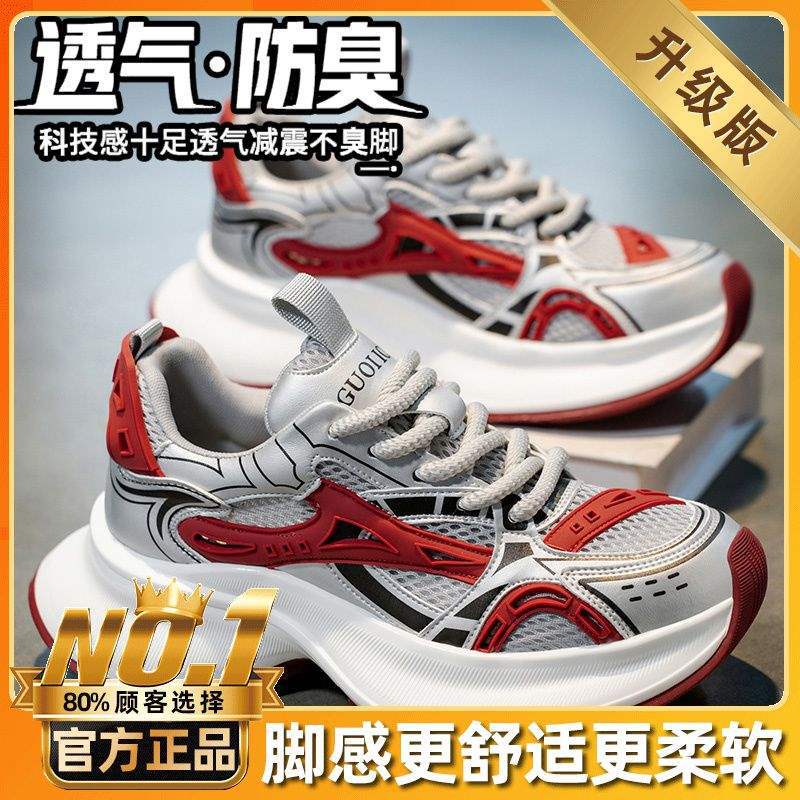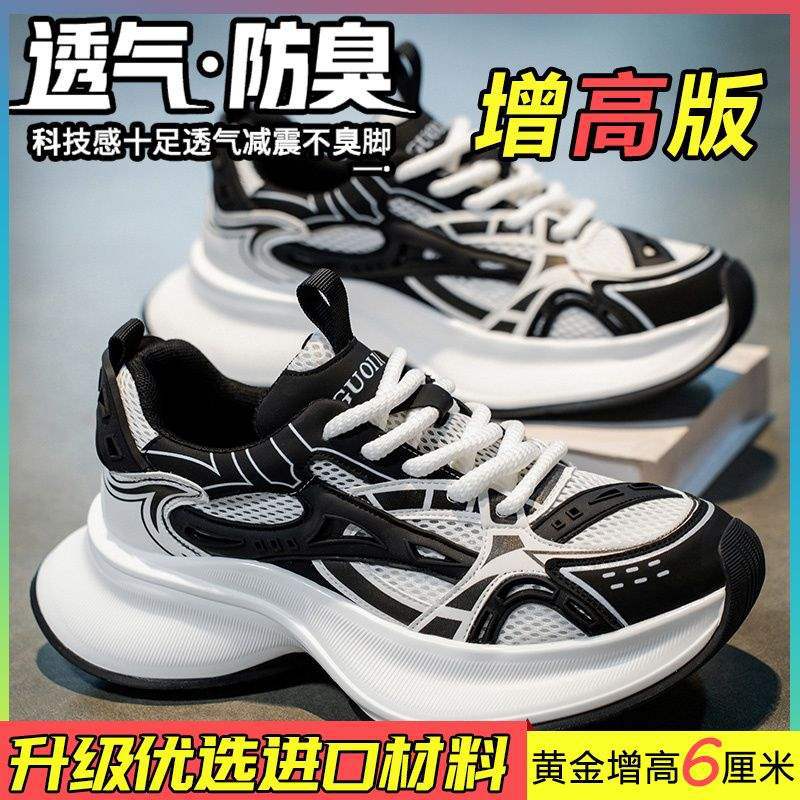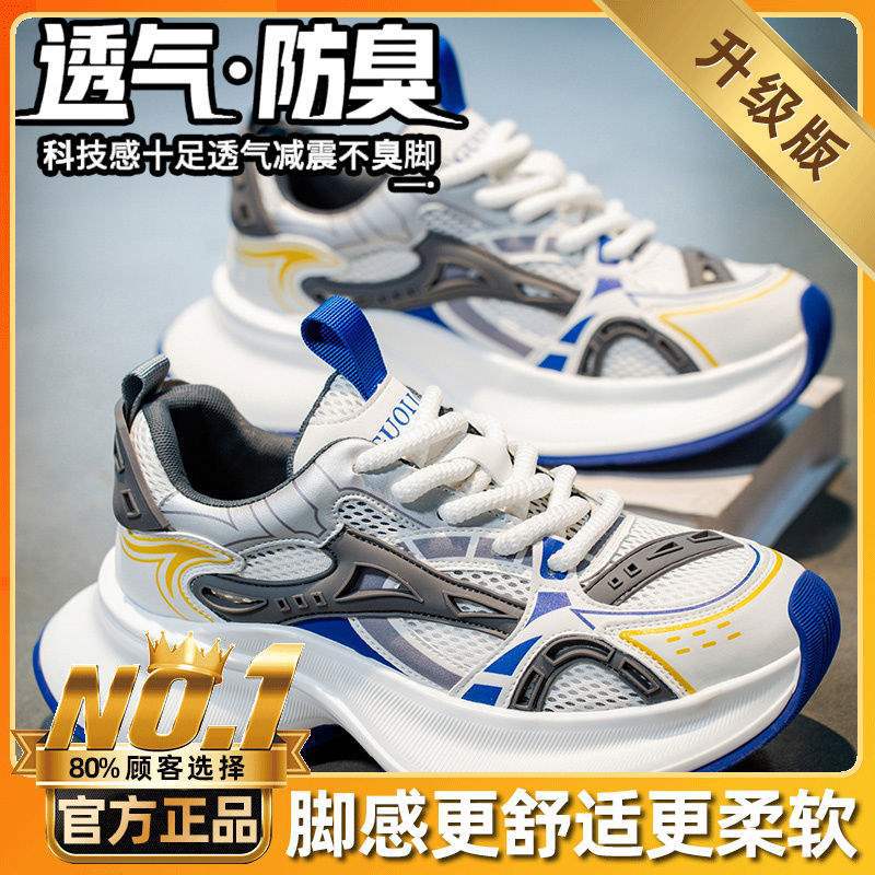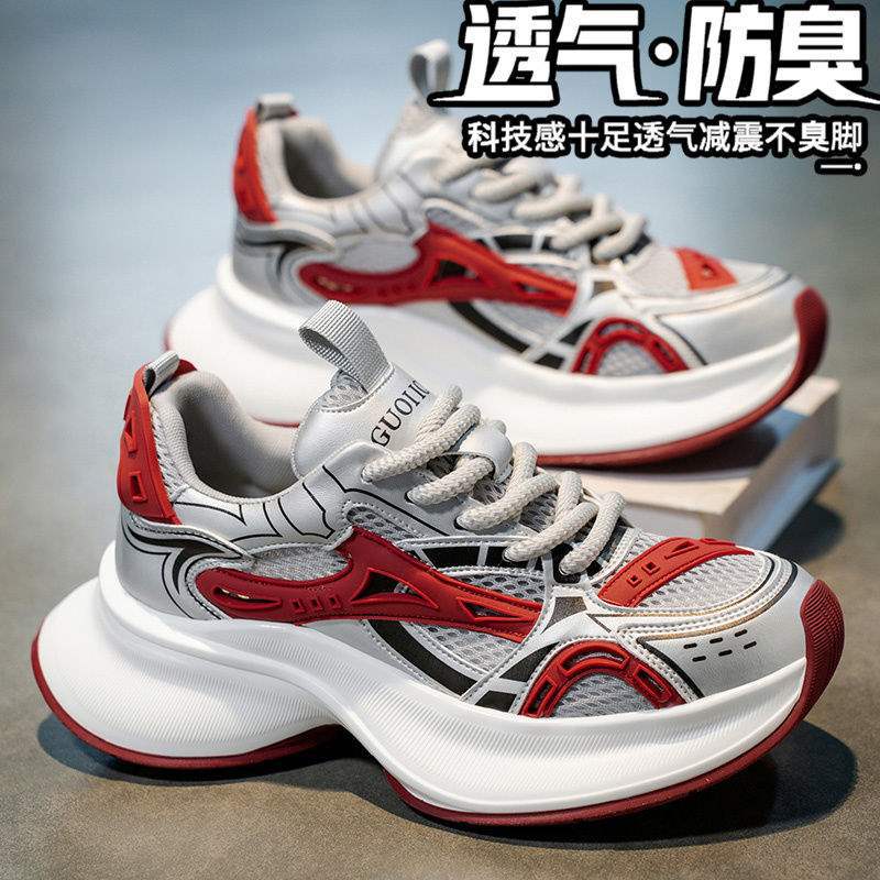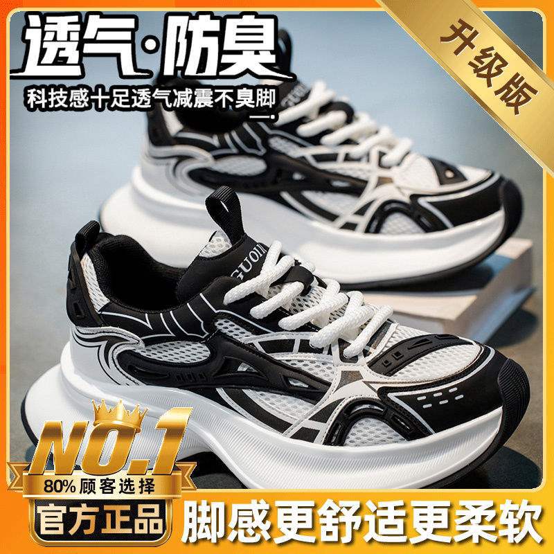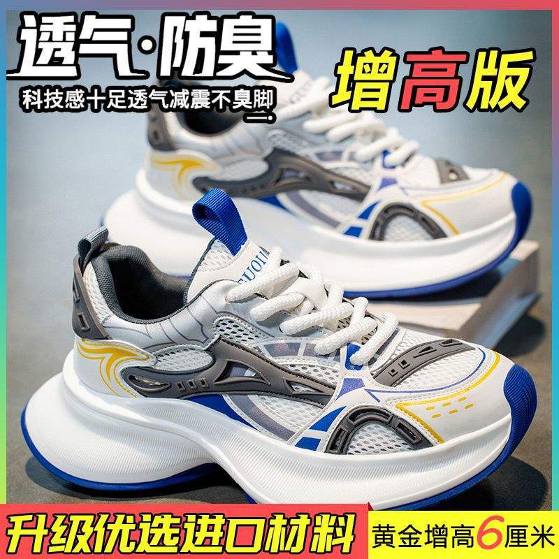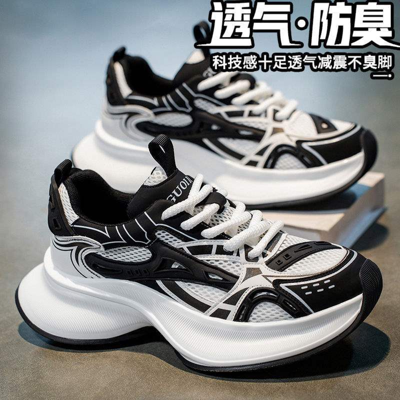 트렌디 브랜드 남성 신발 여름 신상 로우탑 메쉬 통기성 캐주얼 두꺼운 밑창 한국식 레이스 업 아빠 신발 남성용스토어 가기