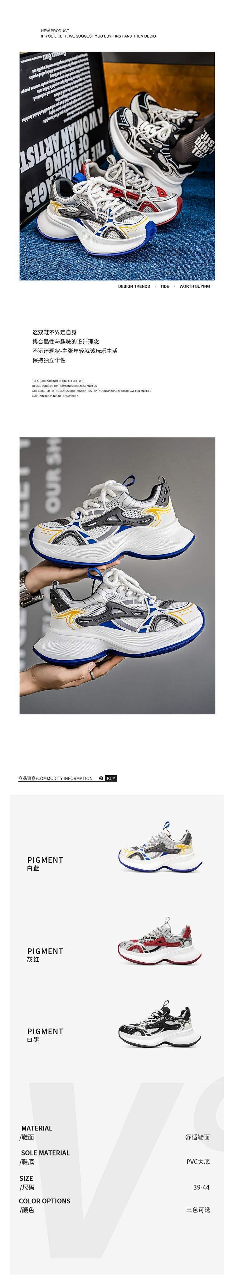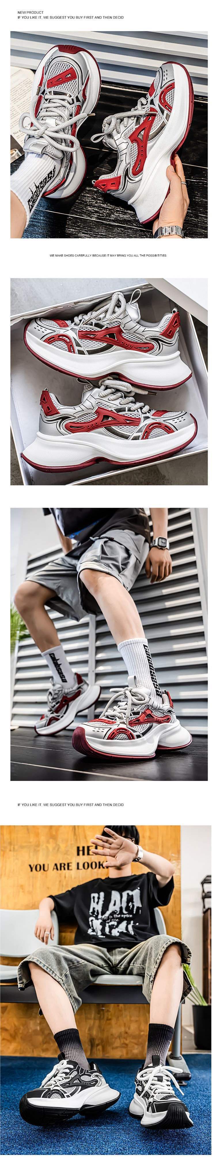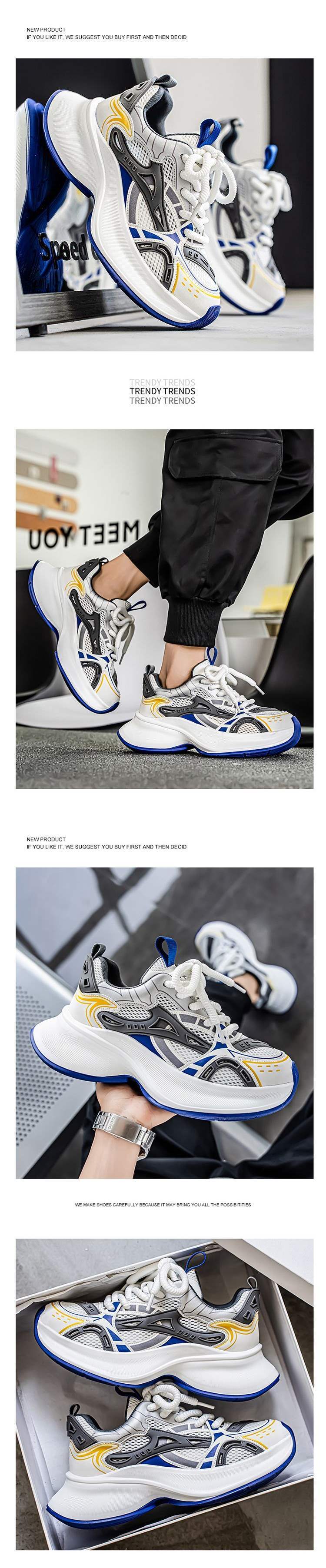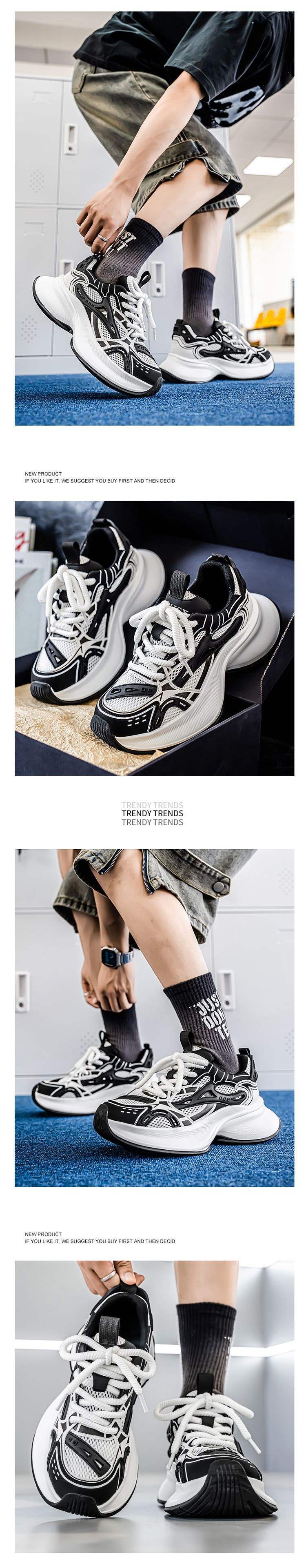 트렌디 브랜드 남성 신발 여름 신상 로우탑 메쉬 통기성 캐주얼 두꺼운 밑창 한국식 레이스 업 아빠 신발 남성용스토어 가기