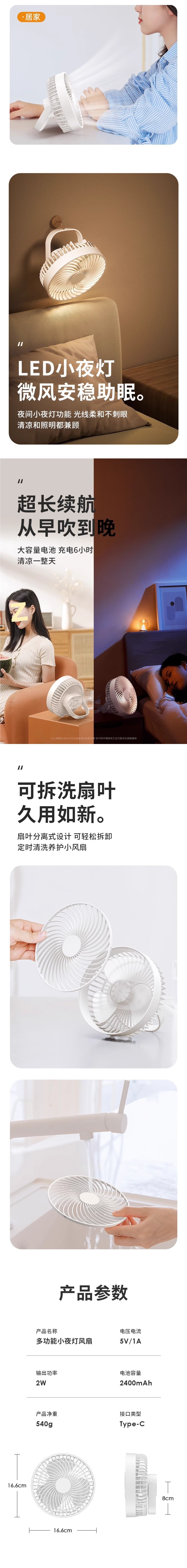 • 밝고 하얀 [직접 플러그인 모델] 야간 조명 없음/풍력 1단계만/5m/s 순환 시원한 바람을 불 수 있음